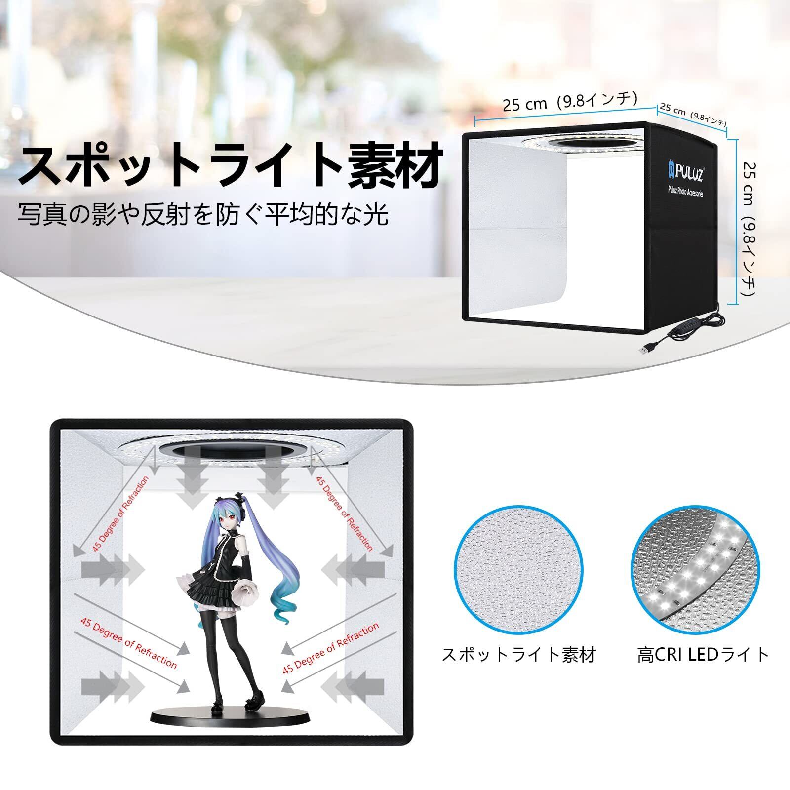 PULUZ 撮影ボックス 25cm 折りたたみ式 簡易スタジオ 撮影キット 明るさ調節可能 撮影ブース 102個のハイカラービーズLEDライト & 6枚の両面背景紙 (合計12色) 写真スタジオ 組み立て簡単 小物撮影用