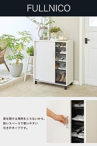 白井産業 下駄箱 シューズボックス 玄関収納 木製 開閉に場所を取らない引き戸タイプ 幅80cmサイズ 約18~24足収納 ホワイト 白 木目柄 ベーシックデザイン 幅80.2×奥行39×高さ99cm FUL-1080SD WH フルニコ