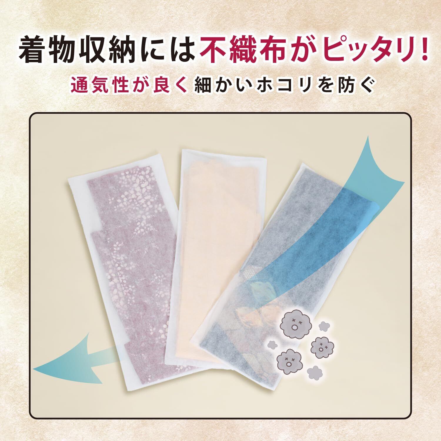●紙製のたとう紙より破れにくく丈夫。大切な着物をホコリや汚れから守る。
