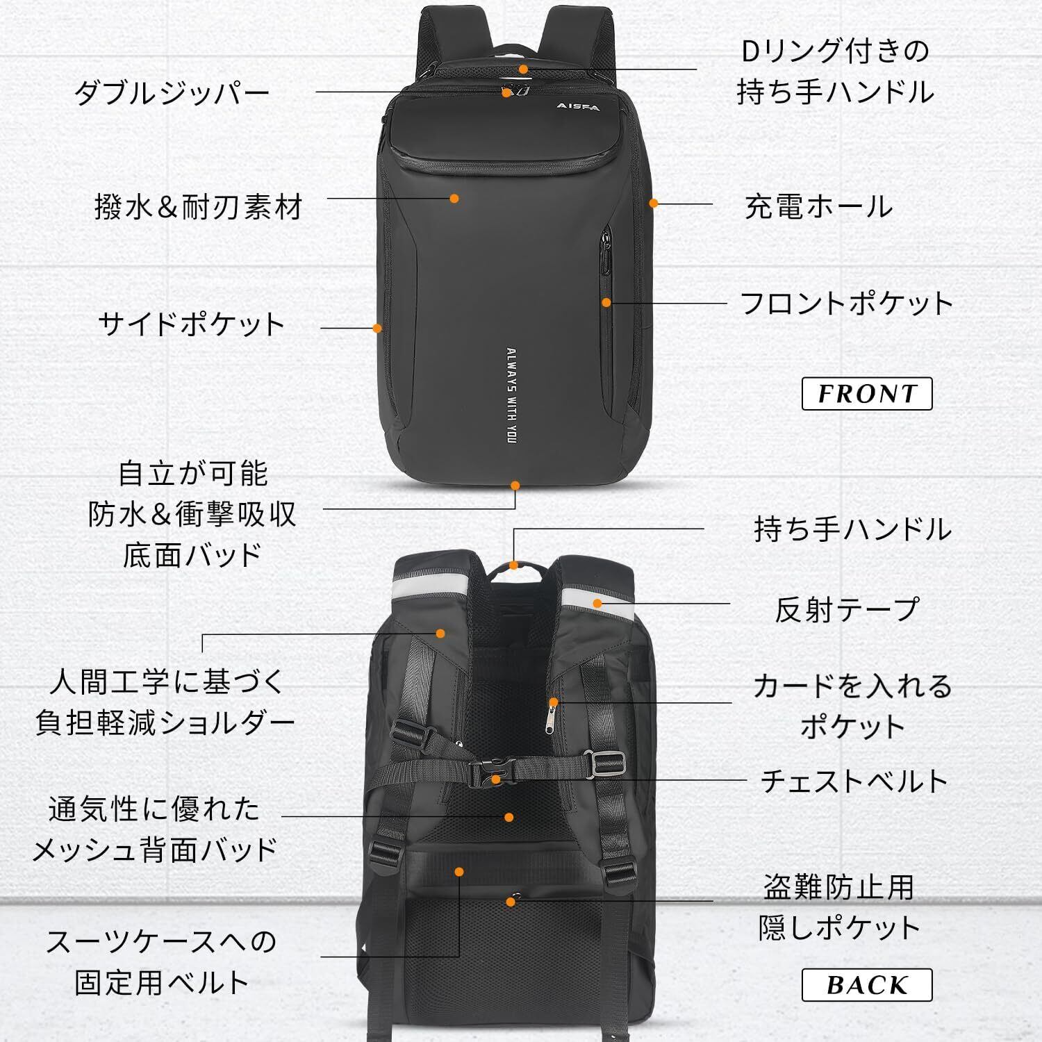 [AISFA] リュック メンズリュックサック バックパック 17インチ PCビジネスリュック 大容量 防災 bag USB充電機能付き 30L 旅行 学生 バッグ 防水 通勤 修学 男女兼用 多機能 A4収納 多ポケット