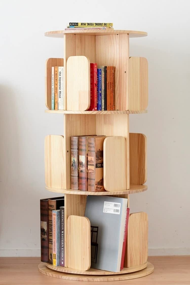山善(YAMAZEN) 本棚 (回転式本棚) 絵本棚 天板に物が置ける A4が入る高さ 3段 (直径50cm×高さ100cm) 天然木 漫画 小さい本棚 ブックシェルフ 組立品 ナチュラル TKR-3(NA)