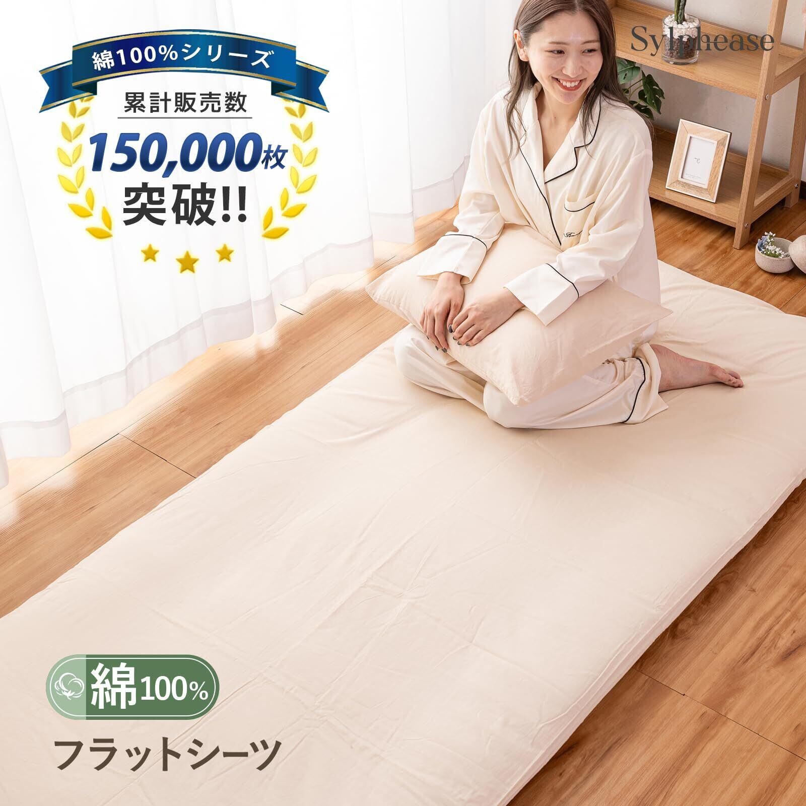 シルフィーズ フラットシーツ シーツ 薄手 シングル ベージュ 綿100% 敷き布団用 和 和式 綿100 綿 敷き布団カバー 敷きカバー 来客用 150×250cm