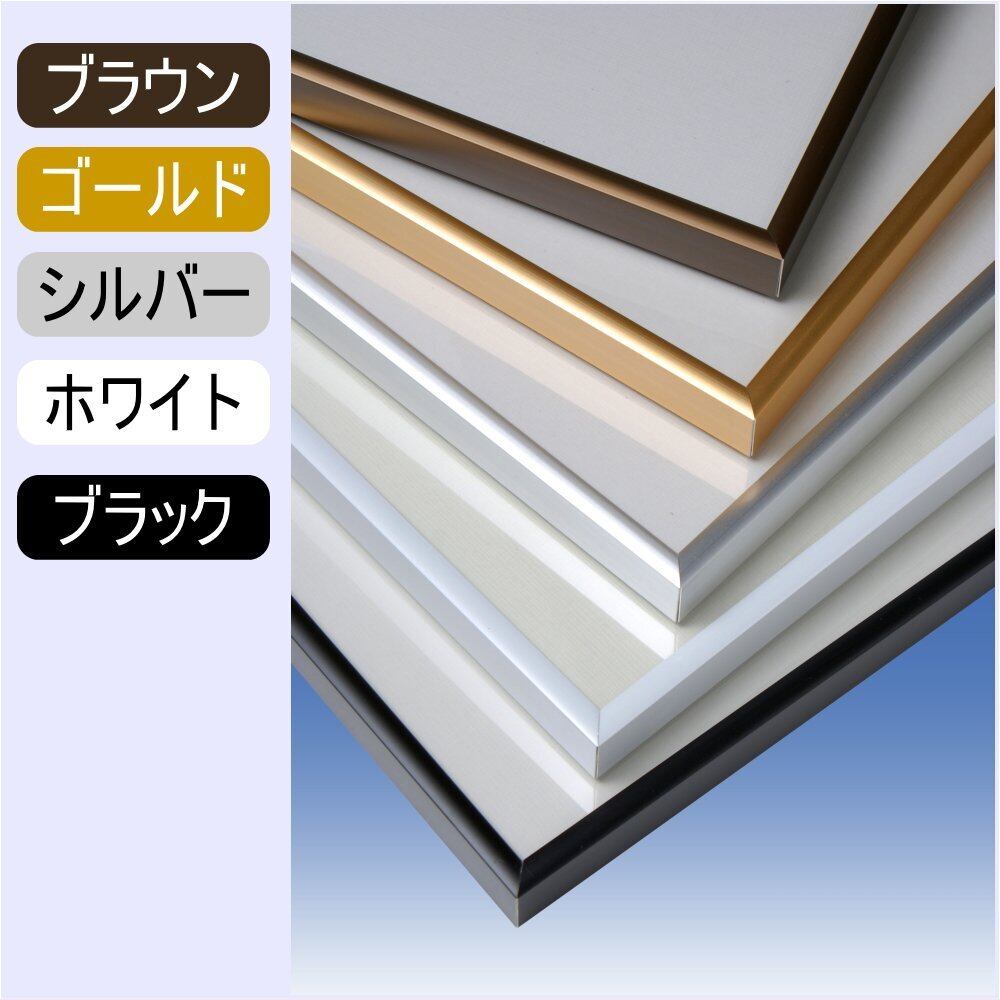アルミ製の軽量前開き式フレーム。一辺のフレームを開くだけで作品の交換が可能。フレーム色は落ち着いた雰囲気のシルバーです。