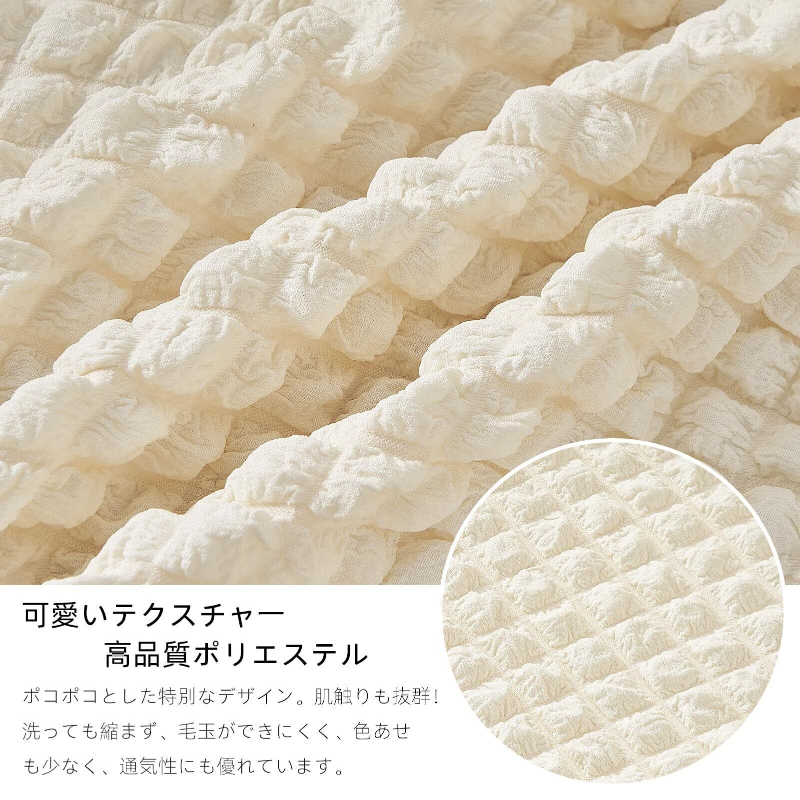 可愛くて高品質なポリエステル素材:ポコポコとした独特なテクスチャーが特徴で、丈夫でありながら柔らかく、肌触りも抜群です。キズや汚れを防ぎ、繰り返し洗っても縮まず、毛玉ができにくく、色あせも少なく、通気性にも優れています。弾力のある素材が様々な形やサイズのソファにしっかりフィットし、かけるだけソファカバー、ズレがない快適にお使いいただけます。長期間使用できる高品質な素材です。