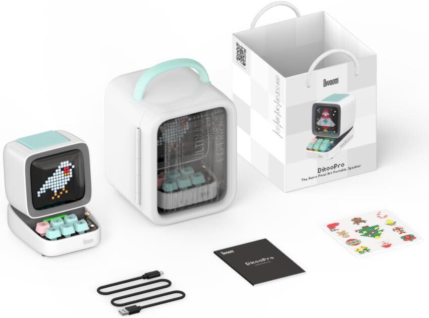【気持ちアップ 卓上グッズ】Divoom Ditoo Pro スピーカー Bluetooth HIFI音質 強化された低音 歌詞表示 最大12h再生 専用アプリ搭載 16*16LED RGB対応 自由カスタマイズ可 多機能20in1 レトロ 可愛い おしゃれ 2025高級ギフト対策(ホワイト)