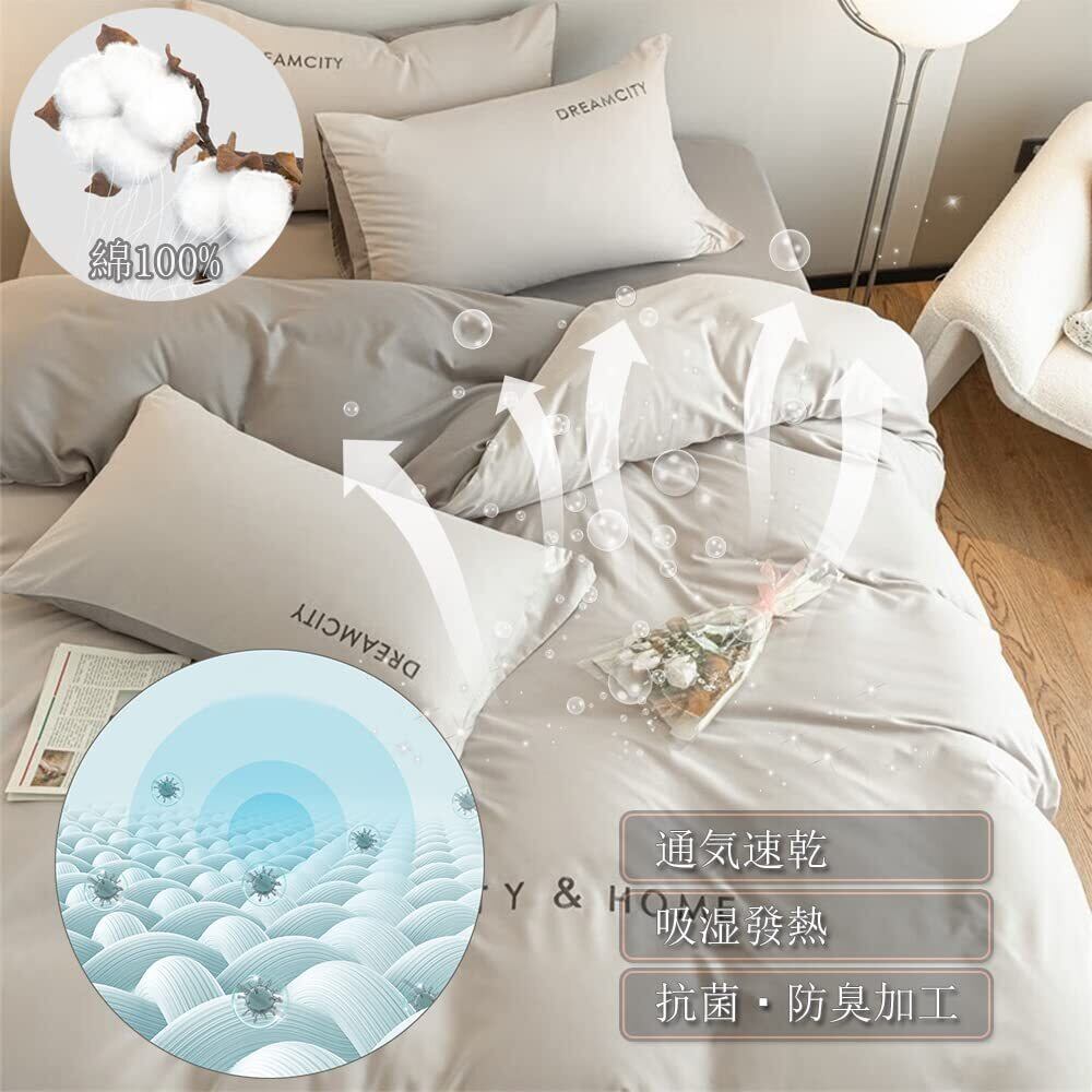 『抗菌防臭加工・防ダニ加工』優れた抗菌防臭効果があり、カビなどの微生物による繊維製品の劣化を抑制。繰り返しの洗濯にも、効果は殆ど変わりません。※布団カバーのDREAMCITY&HOMEの文字は足元側※
