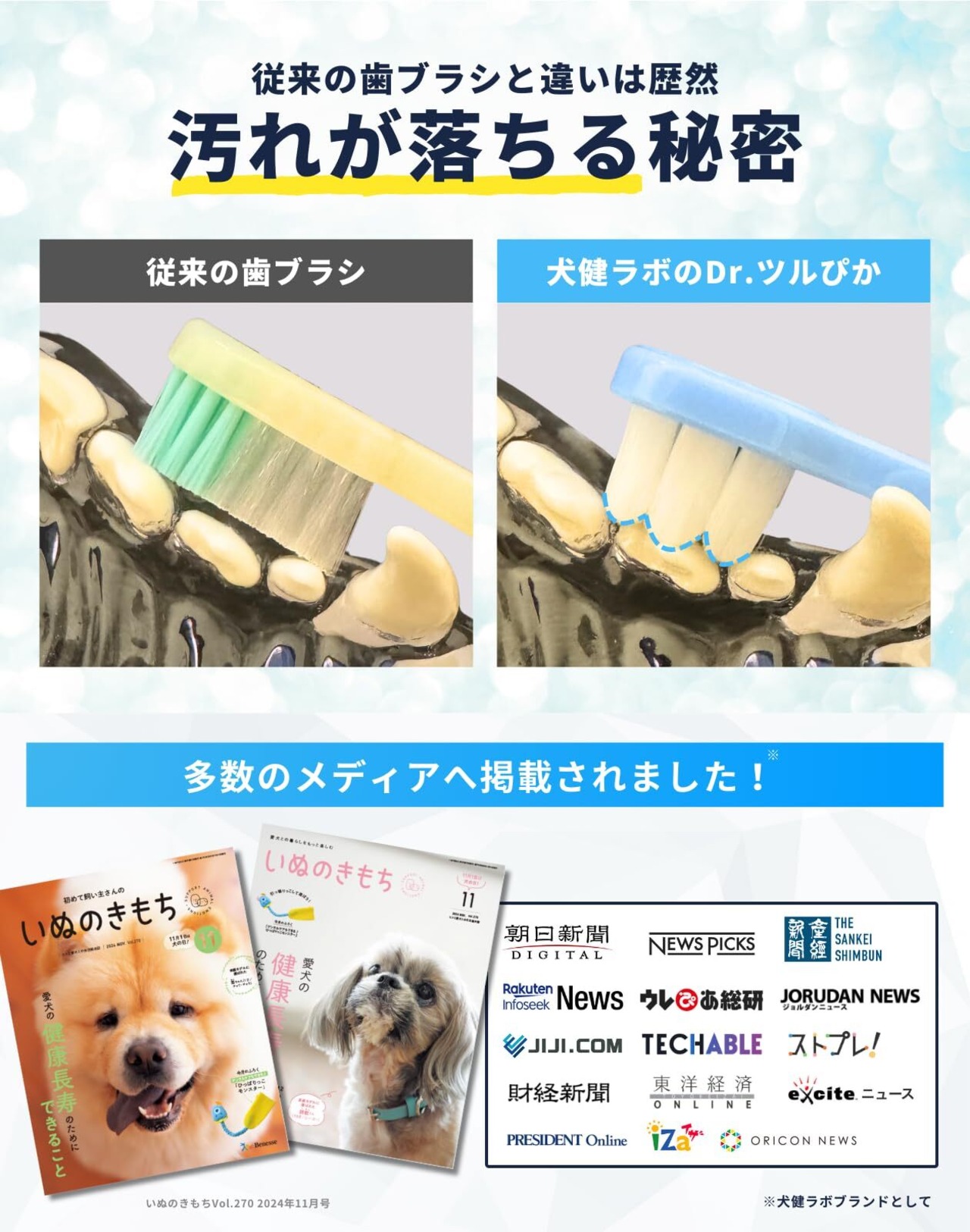 【犬用歯ブラシの新定番】小型犬にもぴったりな犬用歯ブラシで、毎日の歯磨きが楽しくなるデザイン。6山構造が犬の歯の細部まで届き、徹底ケアが可能です。