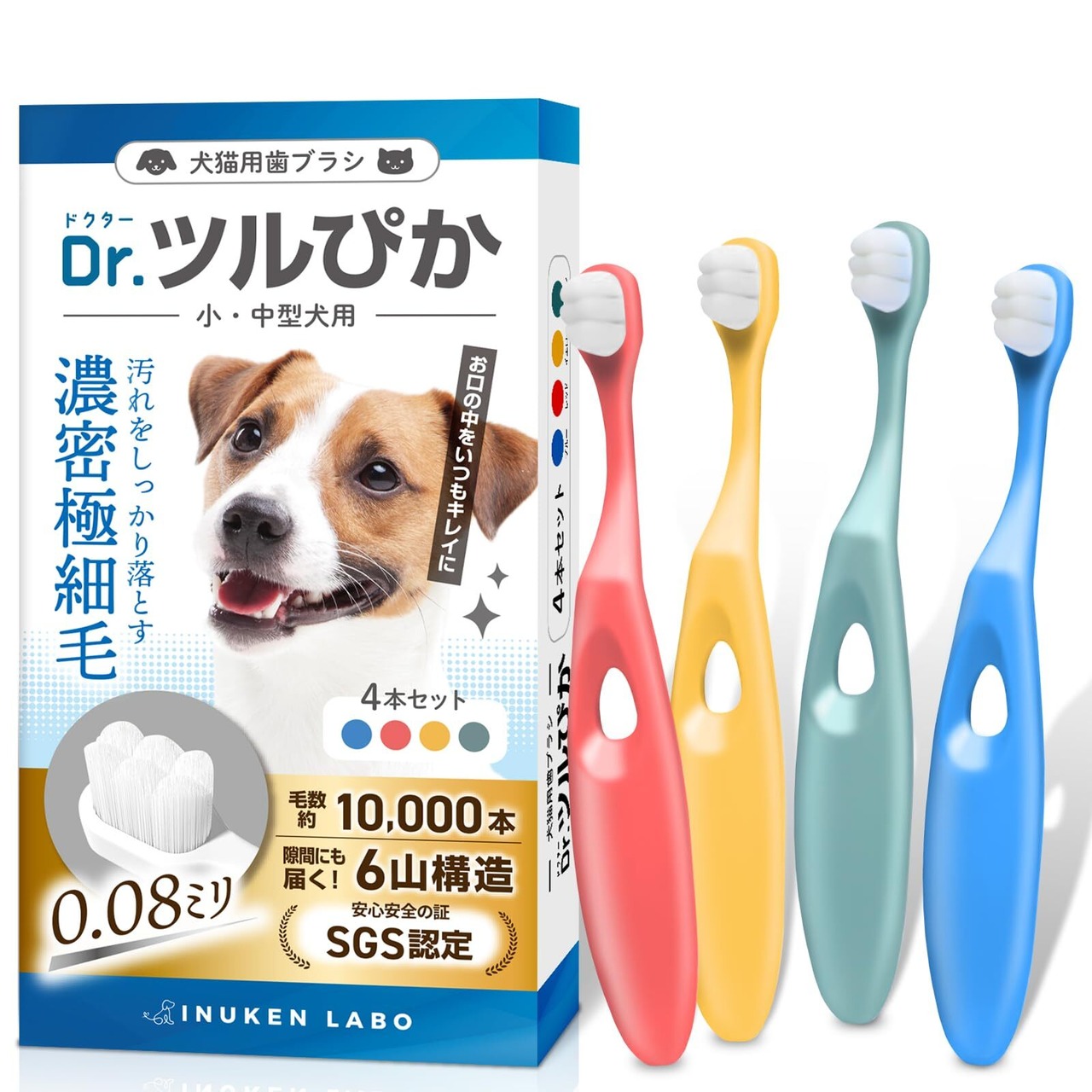 【動物病院認定】 犬健ラボ 犬 歯ブラシ 小型犬 中型犬 抗菌素材 ふわふわ 痛くない 犬用 4本セット