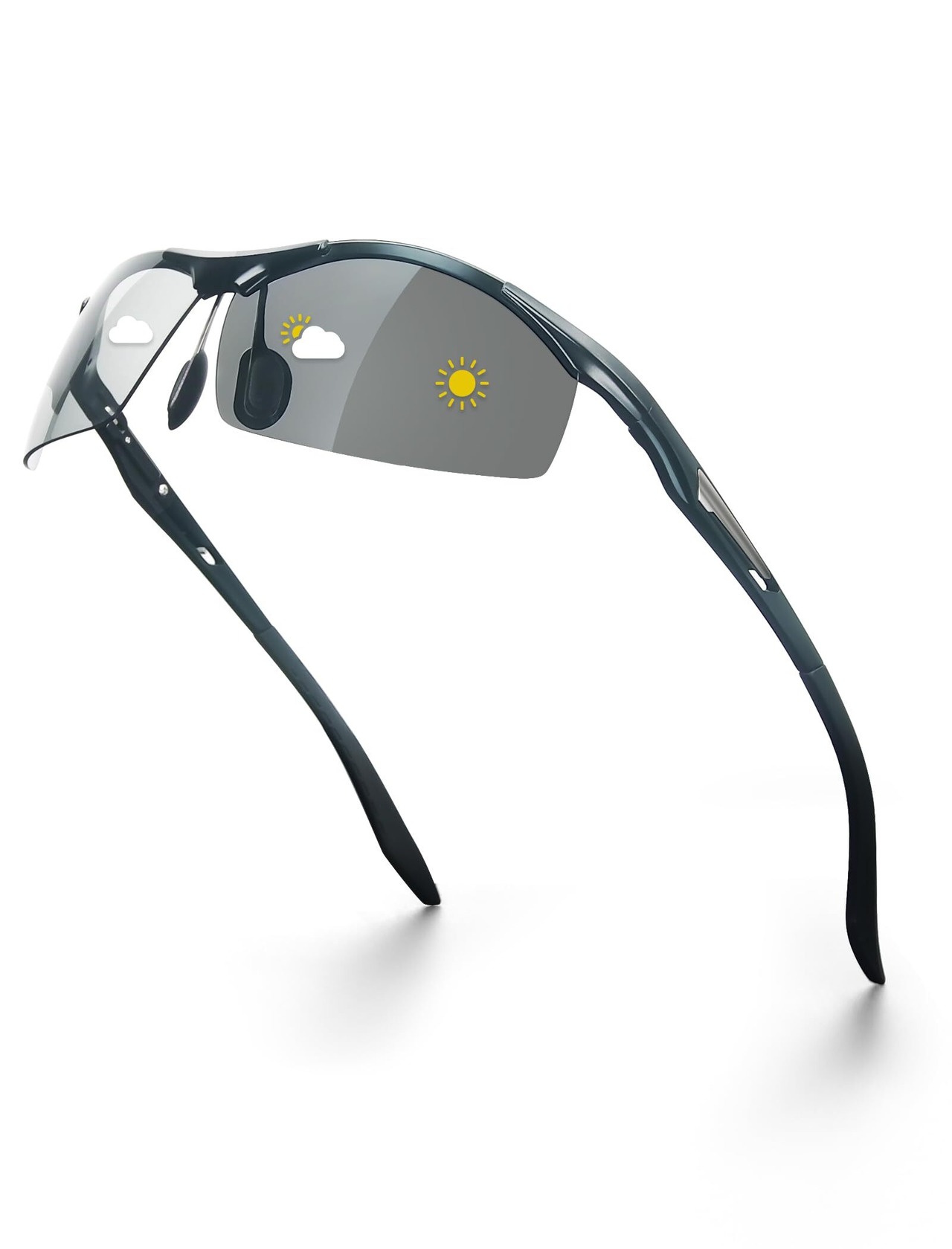 【調光レンズ!自動調整】紫外線の強さに応じてレンズの色が自動で変わり、屋内外で最適な視界を提供します。一つのsunglassesで多様なシーンに対応する。調光レンズは紫外線の強弱で変色します。室内や曇り空では変色が弱くなることをご了承ください。太陽光に15秒ほど当てた後、静電膜を剥がして変色することをご確認いただけます