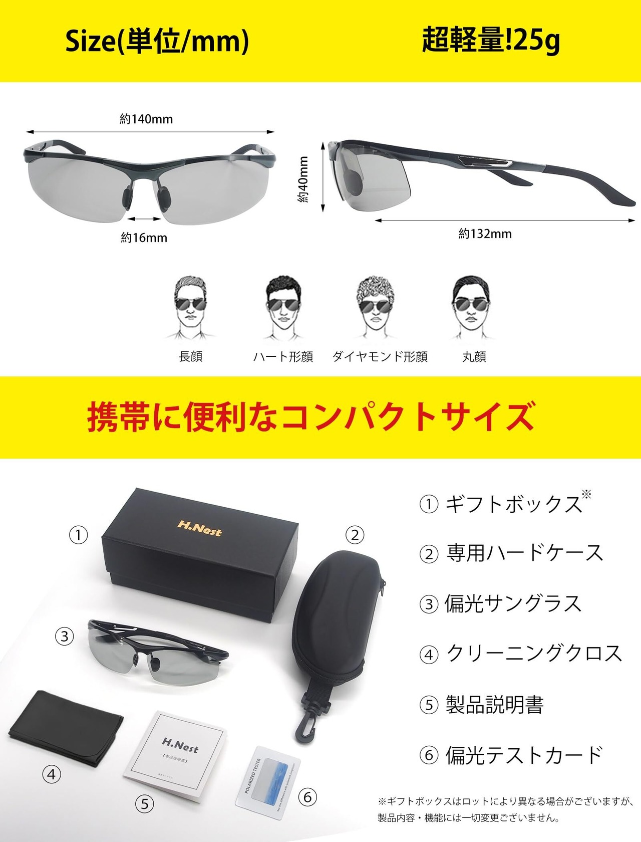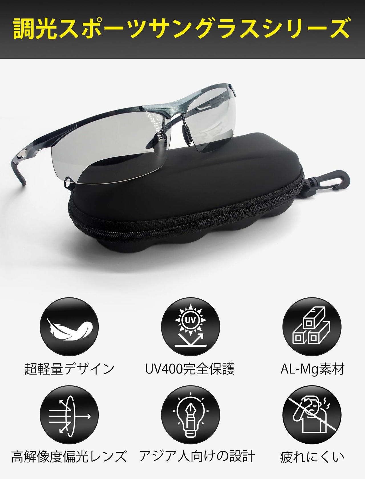 [ヘルスネスト] [H.Nest] 調光偏光サングラス スポーツサングラス 調光レンズ UV 紫外線カット 超軽量 アジア人向け設計 uvカット 釣り·ドライブ·野球·自転車·ランニング·登山·ゴルフ対応