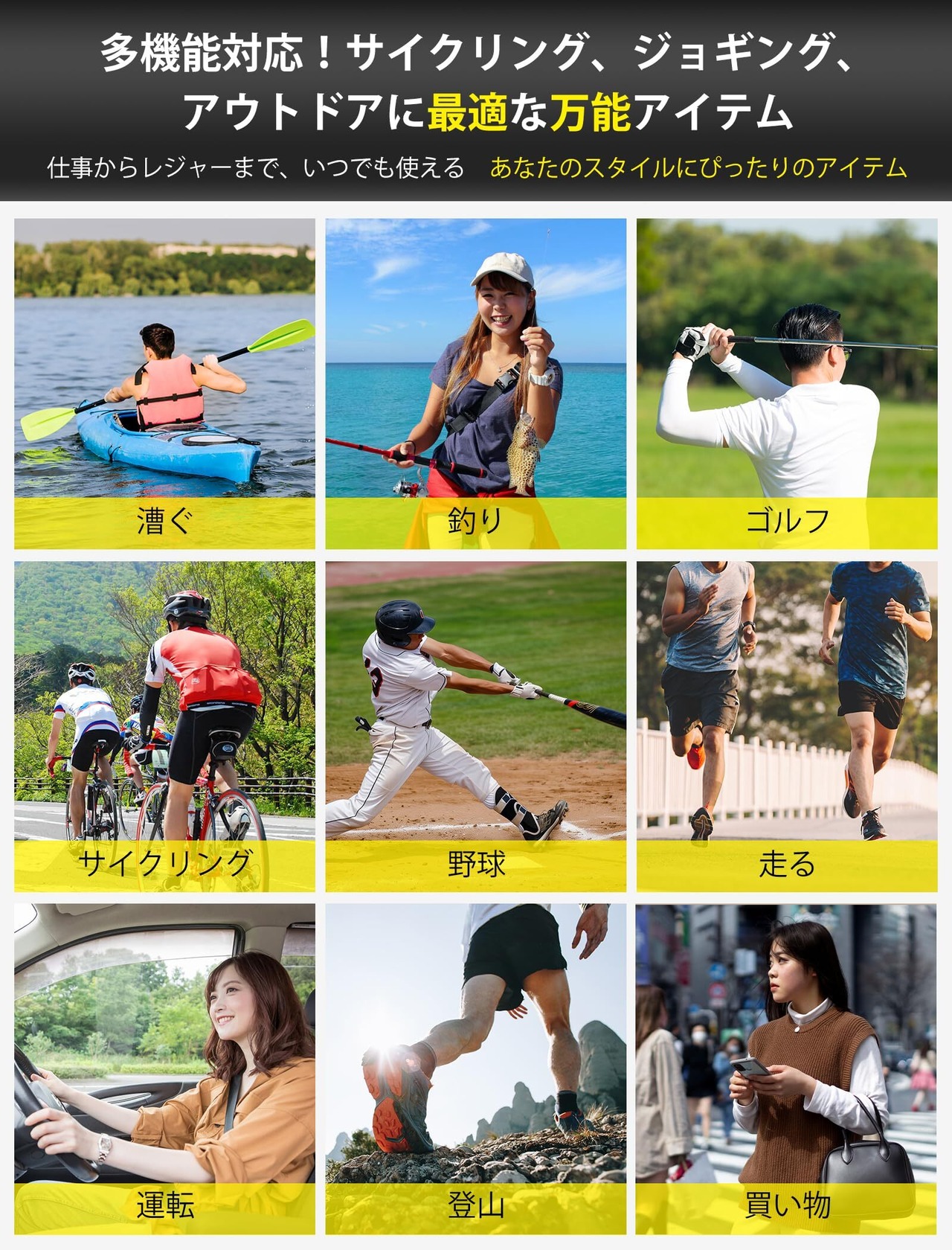 【多用途!様々なシーンで活躍】 釣り、野球 、ゴルフ、自転車、ランニング、登山、アウトドアなど、さまざまなアウトドアスポーツに対応するデザイン。あらゆる場面で、最高の視覚体験を提供します
