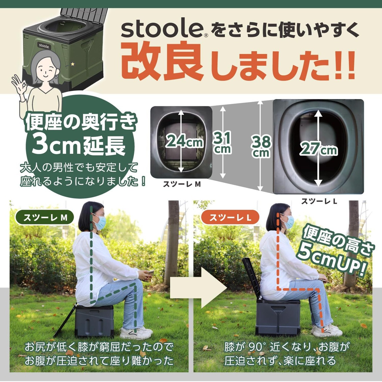 スツーレ® 【防災グッズ大賞受賞】 簡易トイレ ポータブルトイレ 防災からアウトドアまで 携帯トイレ 介護 耐荷重100㎏ (i.ブラック/Lサイズ/排便袋&凝固剤付き)