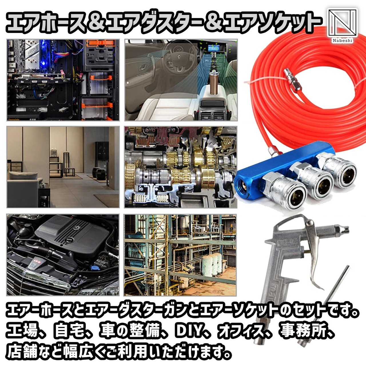 NABESHI エアーホース エアーダスター ジョイント セット 分岐 エアーブロー エアホース エア ガン カプラー (エアホース+ダスター+ソケット)