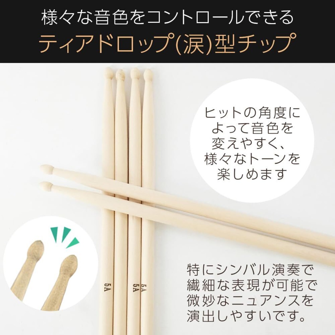 5Aは最も一般的なサイズなので、初心者からプロまで広く使用されています。 練習に十分な3足セット。 メープルは丈夫で長持ちします。 繊細な演奏を必要とするジャズやクラシックに最適で、様々な音楽スタイルに対応します。