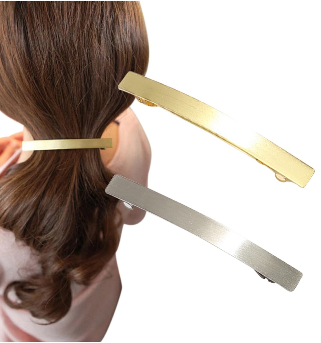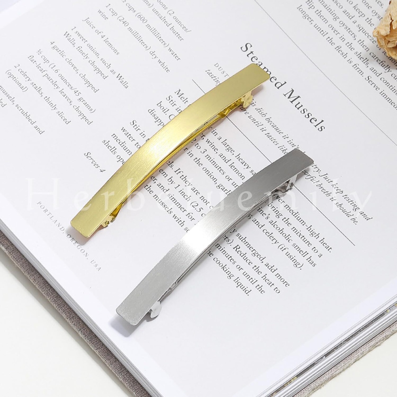 [Herbeluemily] バレッタ しっかり留まる 髪留め ヘアクリップ おしゃれ 大人 ライン シンプル 細め 2個セット ゴールド+シルバー HM-0125-R03-GOSV