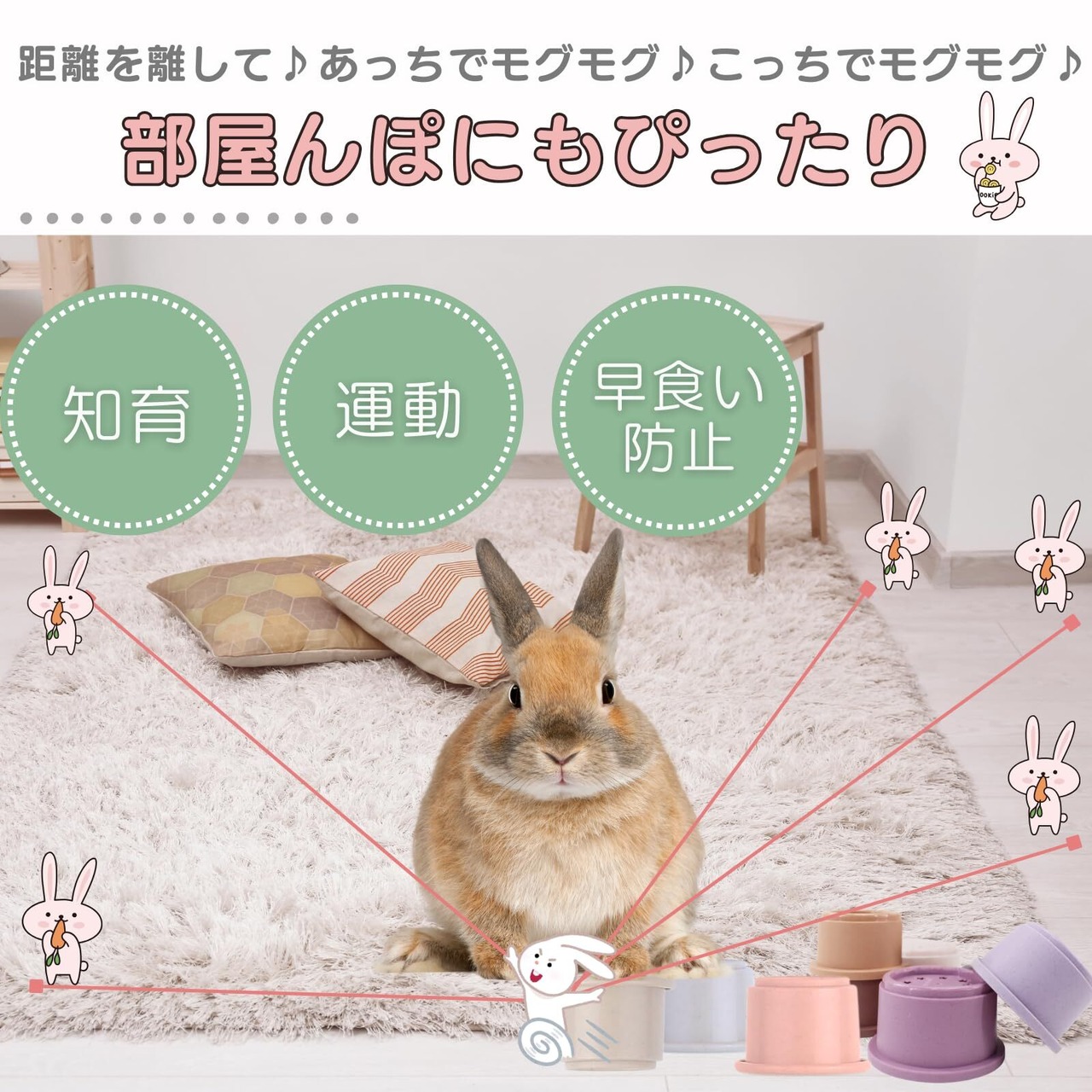 【部屋んぽにもぴったり】カップを少し離して置くと、ウサギさんが探しながら遊べます。運動や早食い防止にもなり、部屋んぽタイムやおやつタイムがもっと楽しくアクティブに!