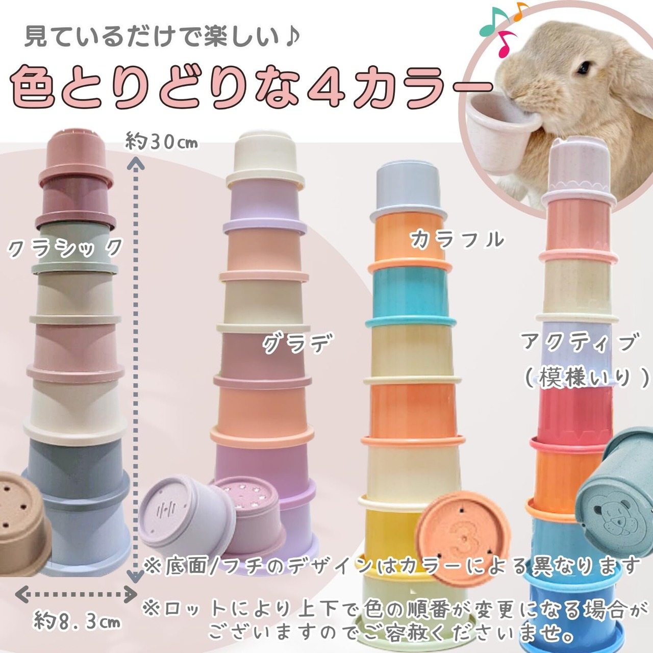 【しっかりしたフチと底面の匂い穴】くわえやすく匂いやすい設計で、うさぎさんが遊びやすい!大小8段セットで、積み重ねたりバラして使ったりと、工夫次第で遊び方が広がります。