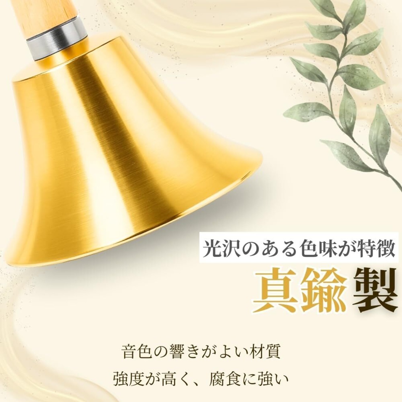【高音質の真鍮製ベル】厚みのある真鍮製ボディがクリアで心地よい高音を響かせ、呼び出しや合図に適した音量を実現します。