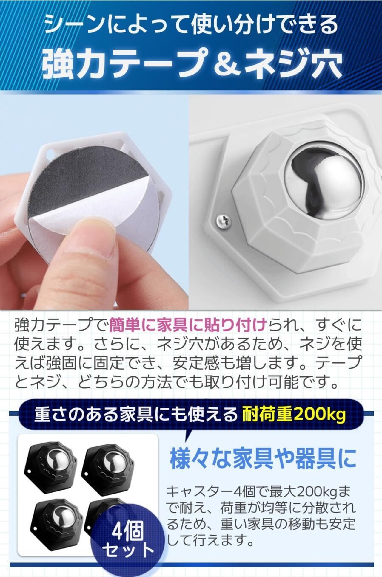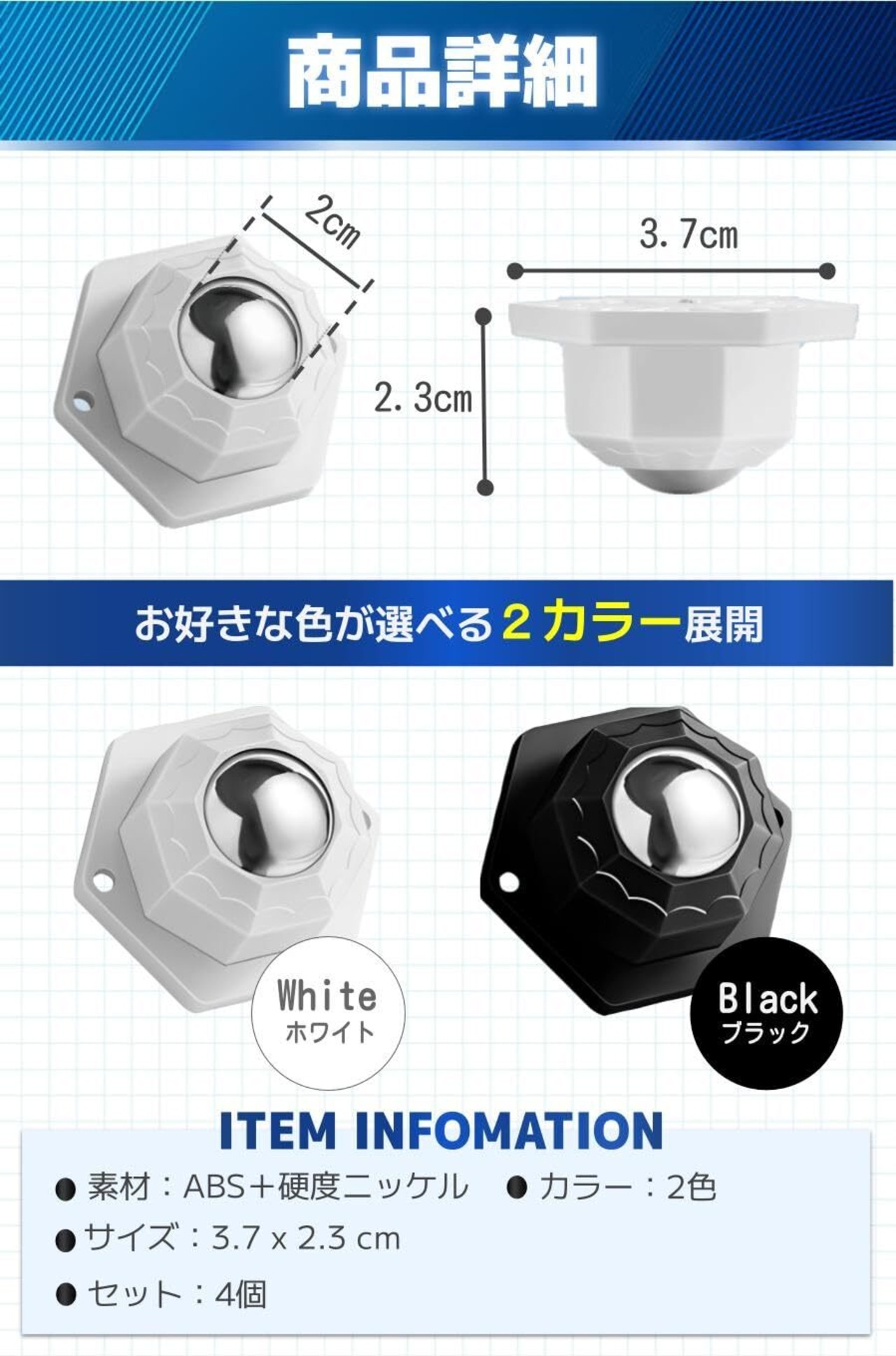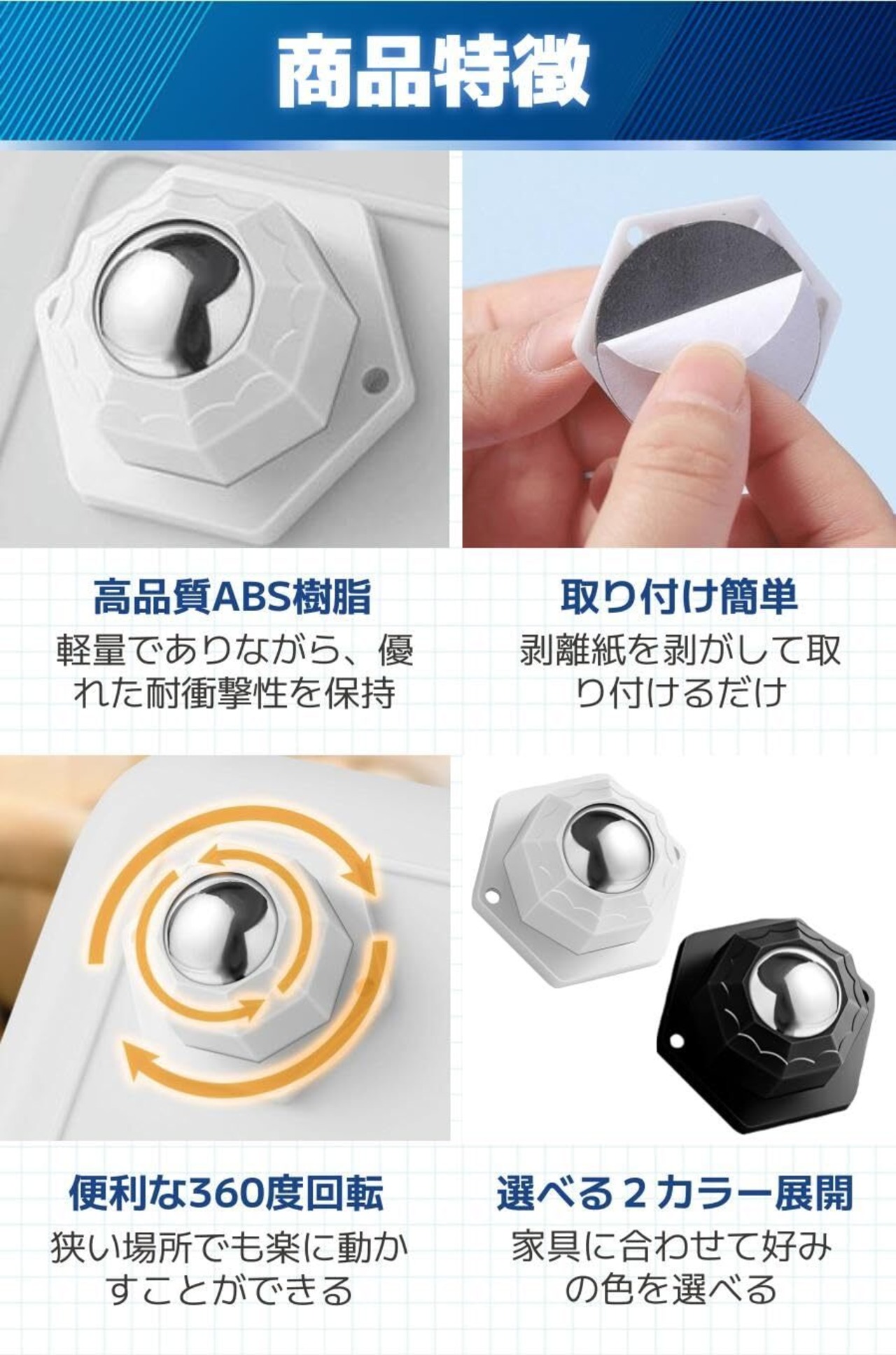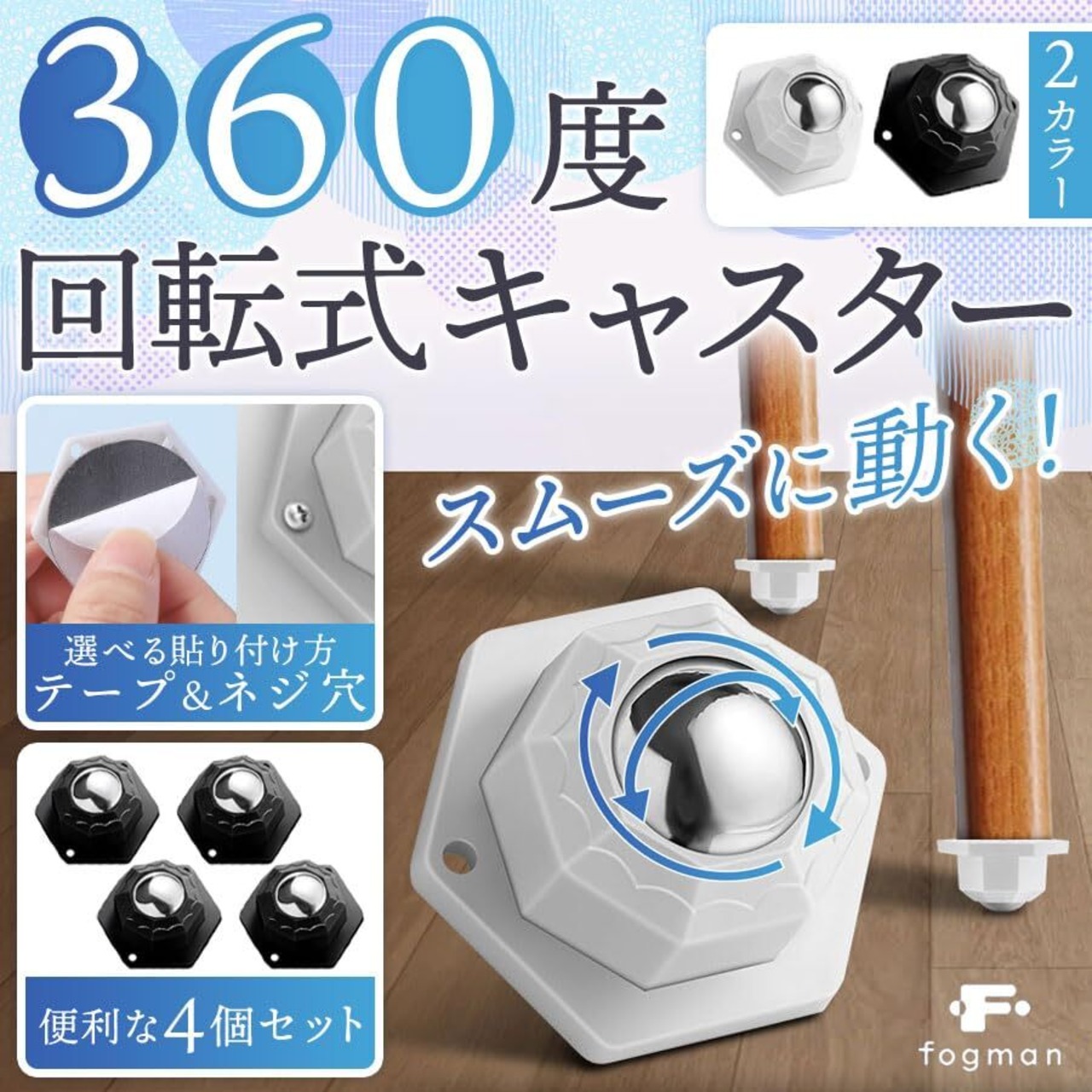 fogman キャスター ボールキャスター 車輪 貼るだけ 後付け 家具移動 テープ 4個セット (ブラック)