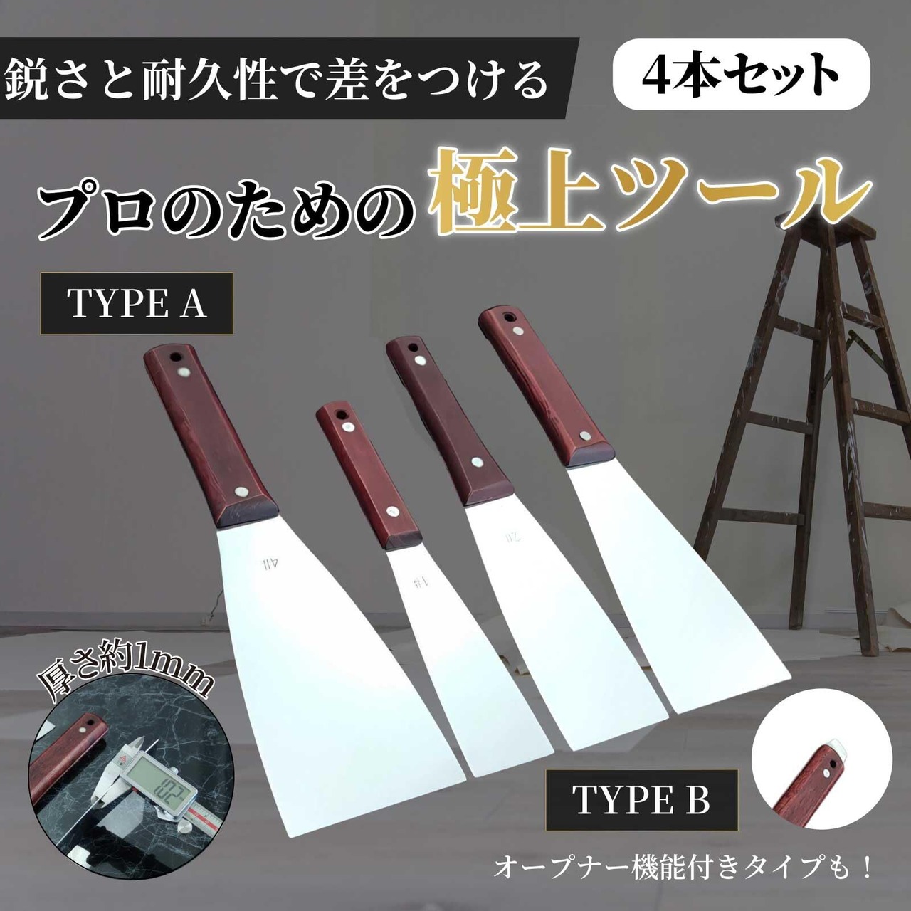 万能ステンレスヘラ4本セット - DIYからプロ仕様まで対応!