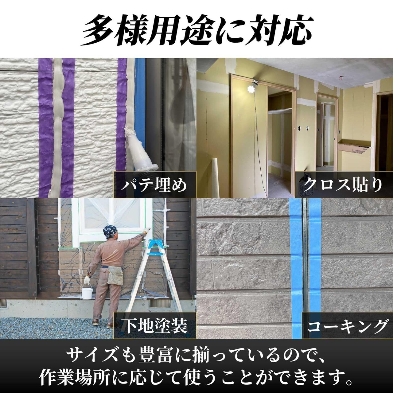 【多用途対応の多機能ツール】 このヘラセットは、塗装作業、コーキングやシーリング材の施工、パテ埋め、クロス貼りなど、多岐にわたる作業に対応します。また、金ベラ、バチベラ、ロスベラとしても使用可能で、頑固な汚れの除去やシール剥がし、シーリングテープの巻取りなど、幅広い用途で活躍します。用途を問わず、さまざまな作業を効率化するために設計された、使いやすさと実用性を兼ね備えた万能ツールです。