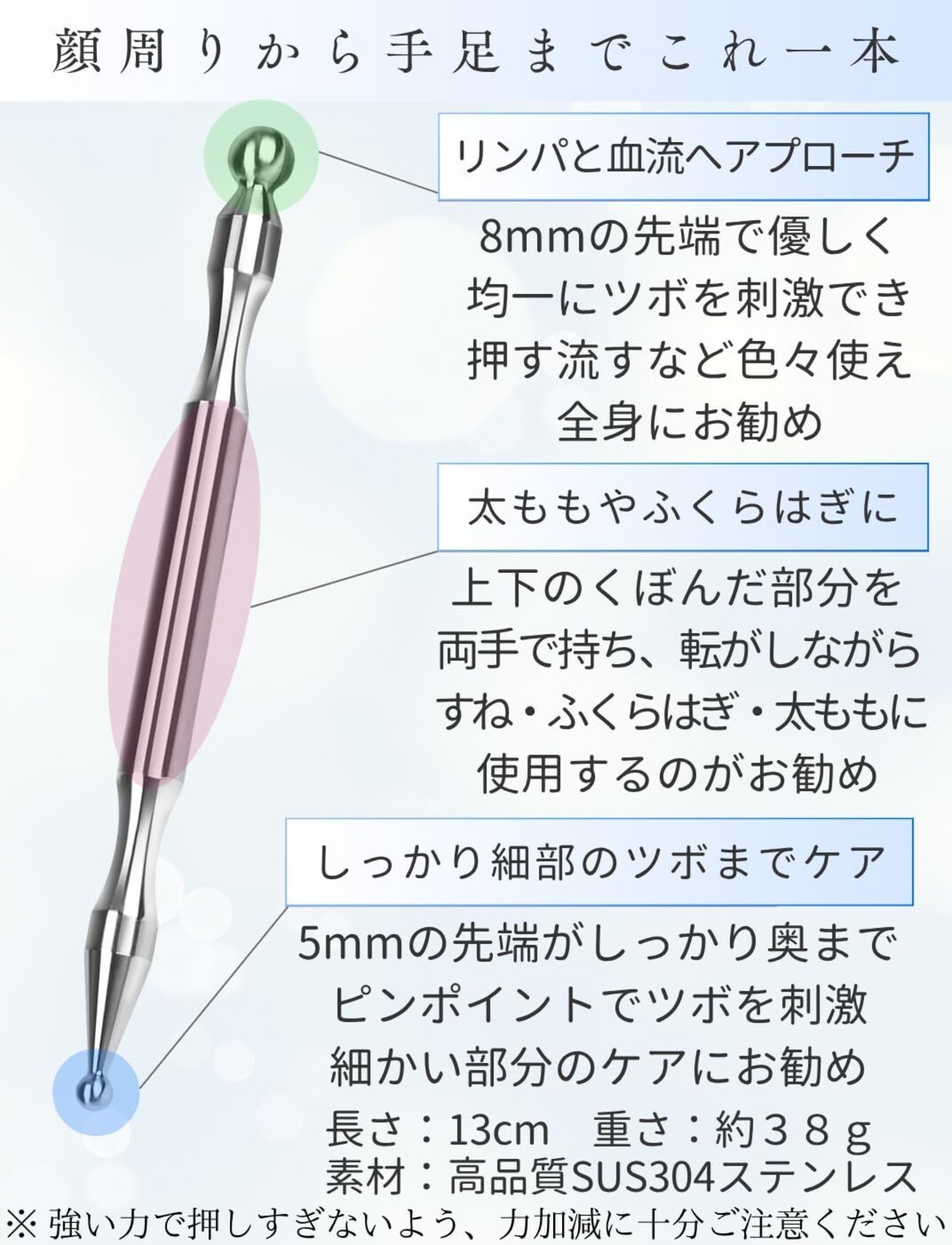 手のツボ、足ツボや耳のツボの指圧にも使用でき、筋膜リリースにも最適です。