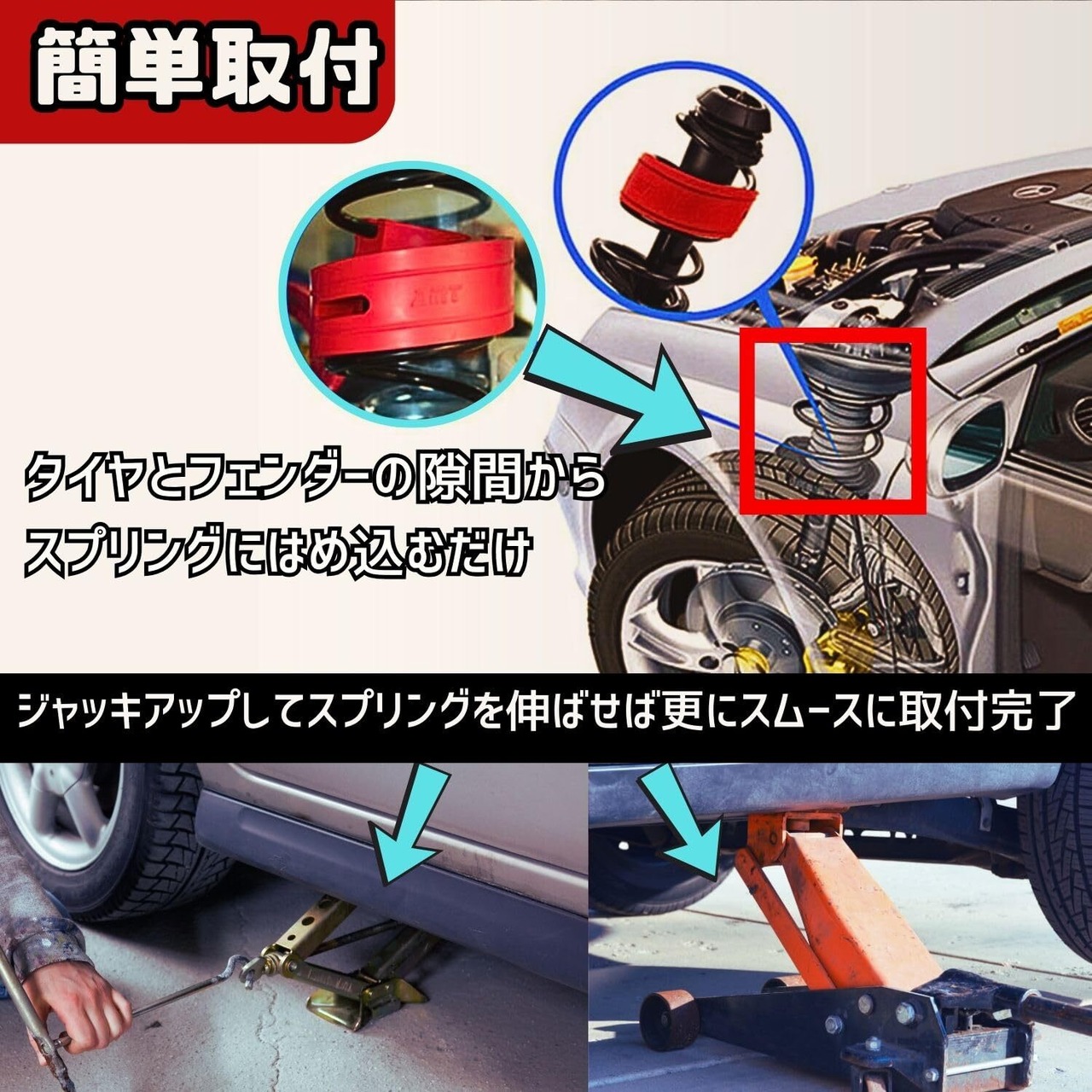 1. ショック吸収&異音解消 ショックアブソーバーで吸収しきれない振動を吸収し、スプリングの線間密着による異音も解消します。乗り心地を快適に改善。