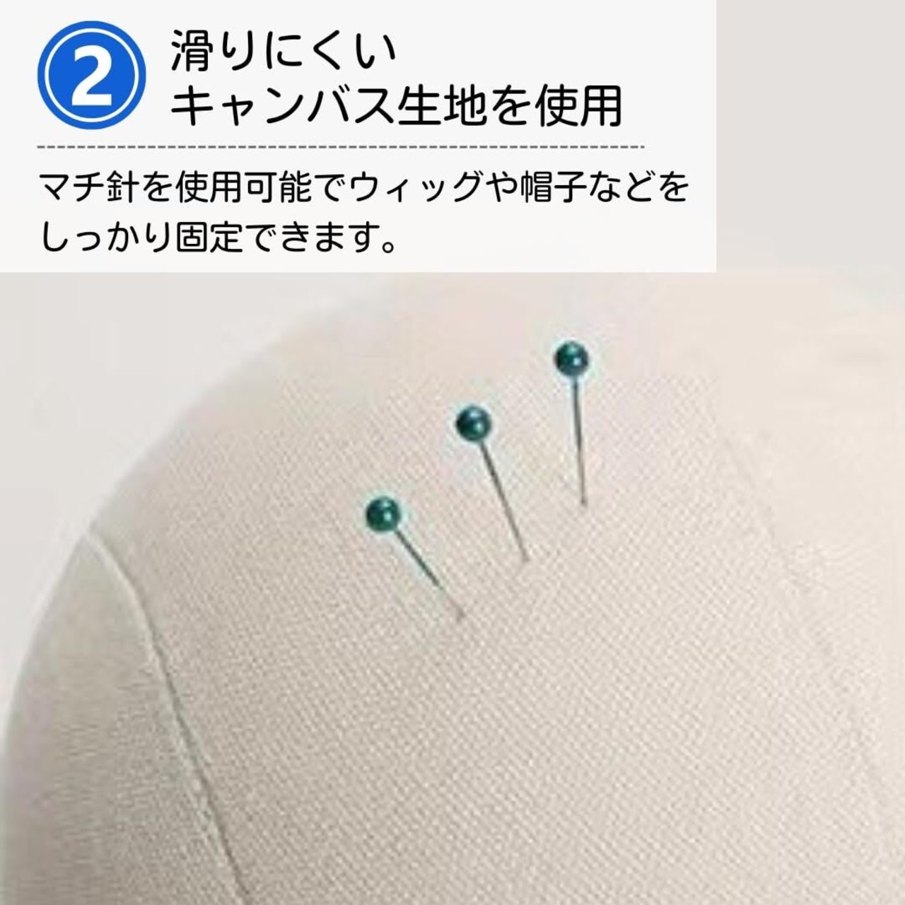 【安心の高品質素材】高級感のあるキャンバス生地を使用しており、展示物が滑り落ちにくい設計です。ウィッグも簡単に固定でき、ヘアセットやカットの練習にも使えます。