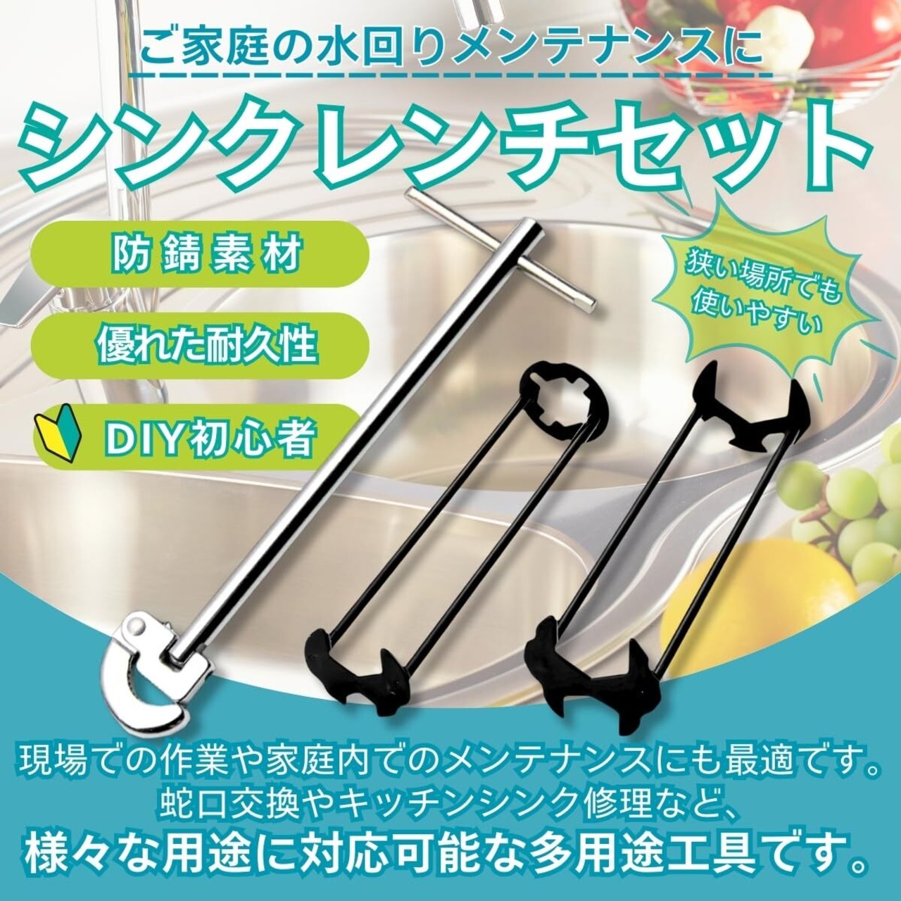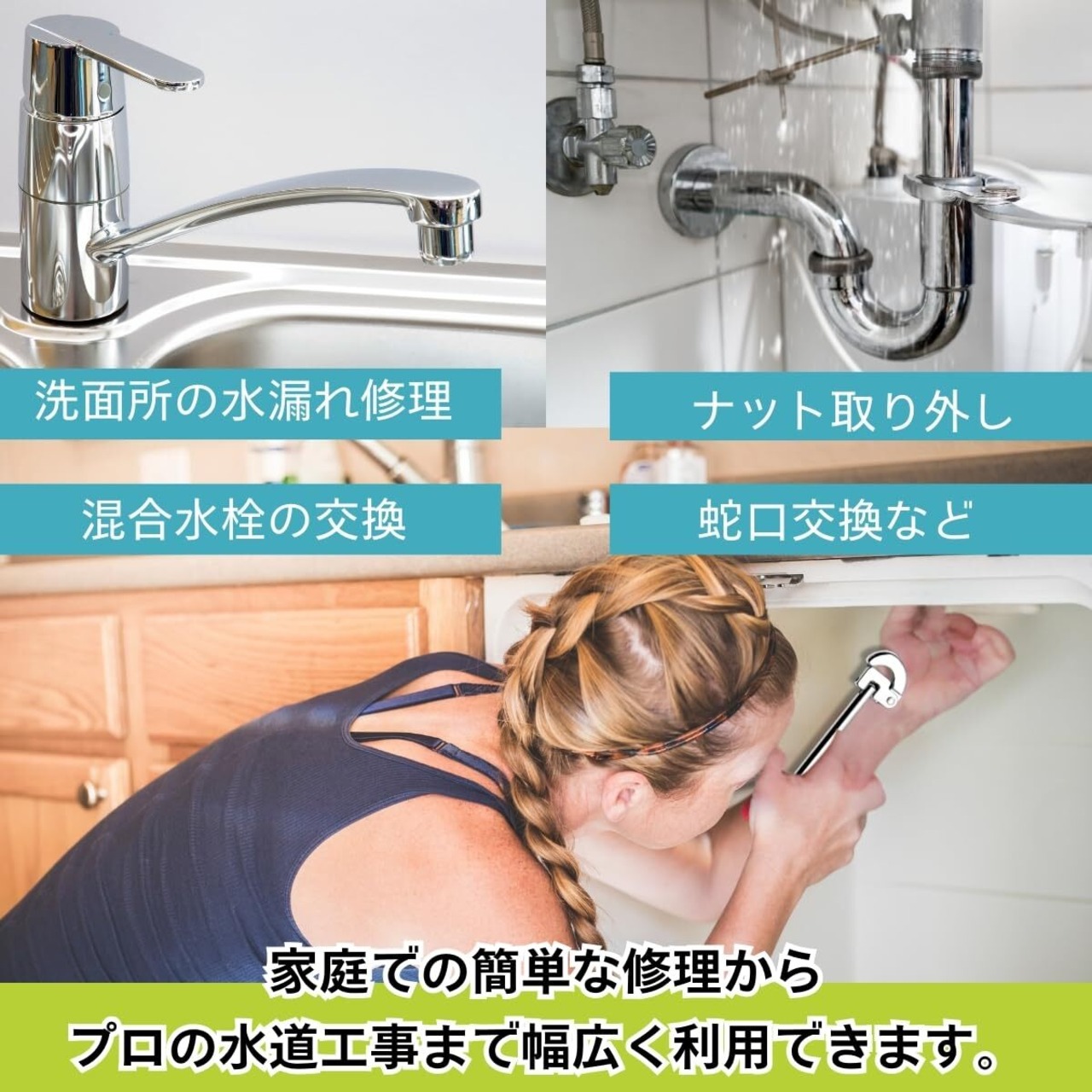 【持ち運びに便利なポータブルデザイン】 このシンクレンチは、コンパクトで軽量な設計により、持ち運びが簡単です。工具箱や引き出しにすっきり収納でき、スペースを取らないので整理整頓にも便利。家庭内の急な修理から出張先や作業現場での使用まで幅広く活躍します。DIY初心者にもプロの職人にも満足いただける、機能性と利便性を兼ね備えたツールです。