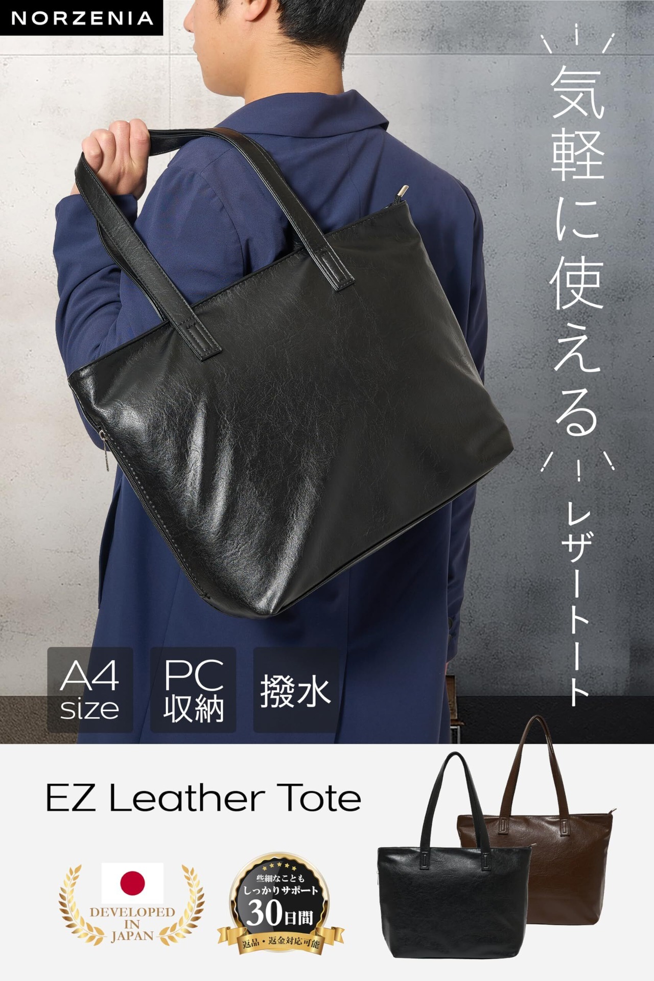 [NORZENIA] トートバッグ ビジネス PC 14インチ / A4 対応 軽量 310g 撥水 柔らかい PU レザー 肩掛け メンズ レディース 通勤 通学 出張 旅行 【新登場2025年2月】