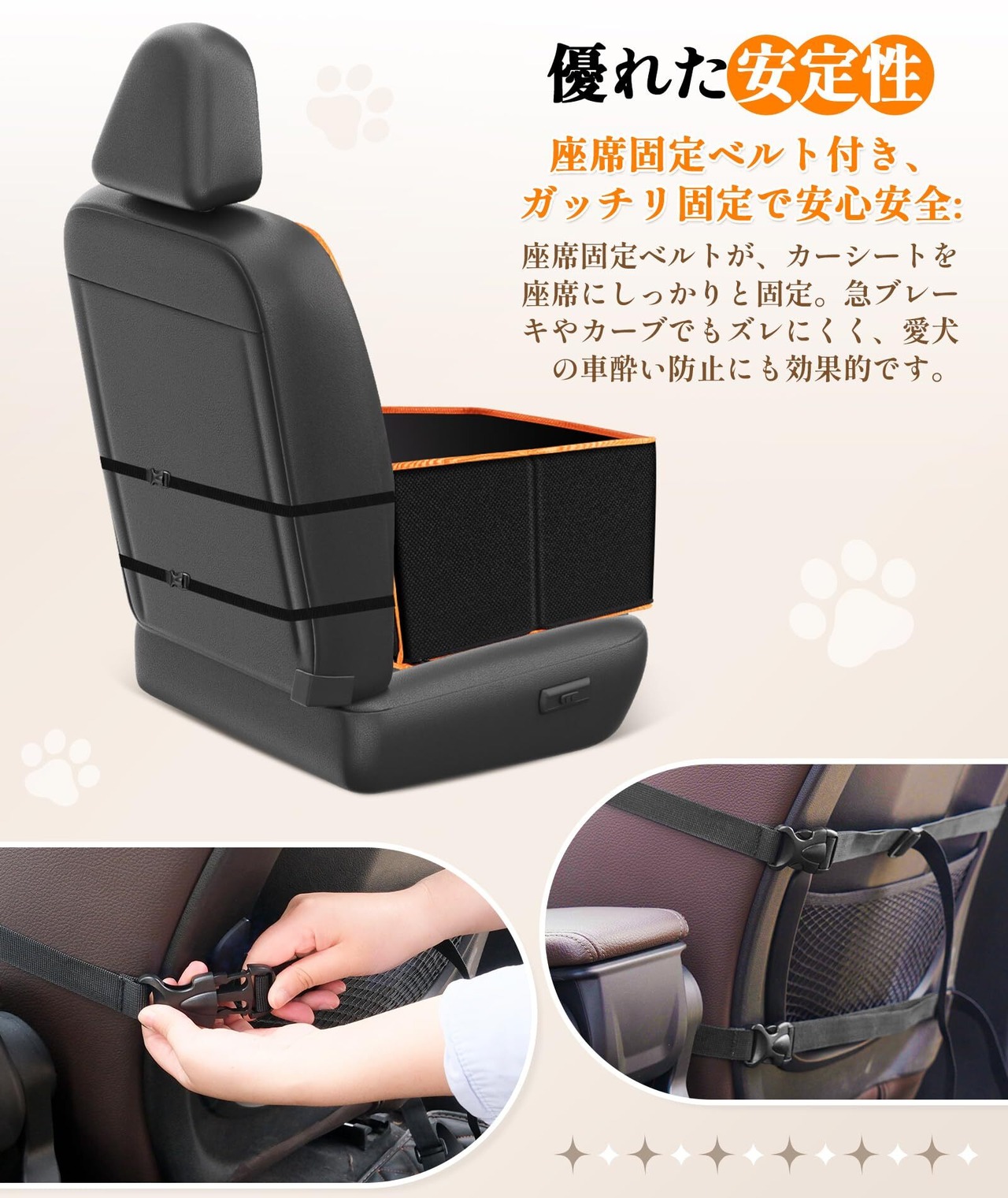 【7cm増高&愛犬の視界を確保】 小型犬に最適な高さで、愛犬が車窓からの景色を快適に楽しむことができます。7cmの高さアップサポーターが愛犬の首への負担を軽減し、快適なドライブをサポートします。犬用シートとして、愛犬との旅行をより安全で楽しいものにします。