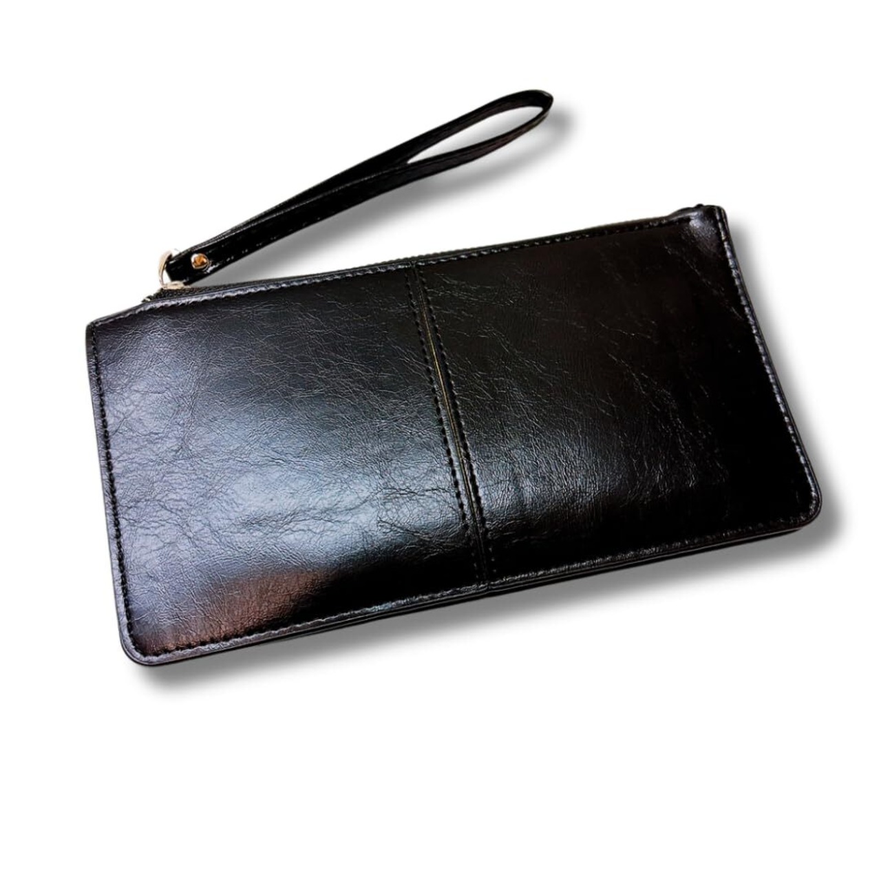 [Capprecier] 長財布 財布 コンパクト財布 レディース ファスナー クラッチ スリムウォレット 薄型 軽い財布 札入れ PUレザー ストラップ おしゃれ (ブラック)