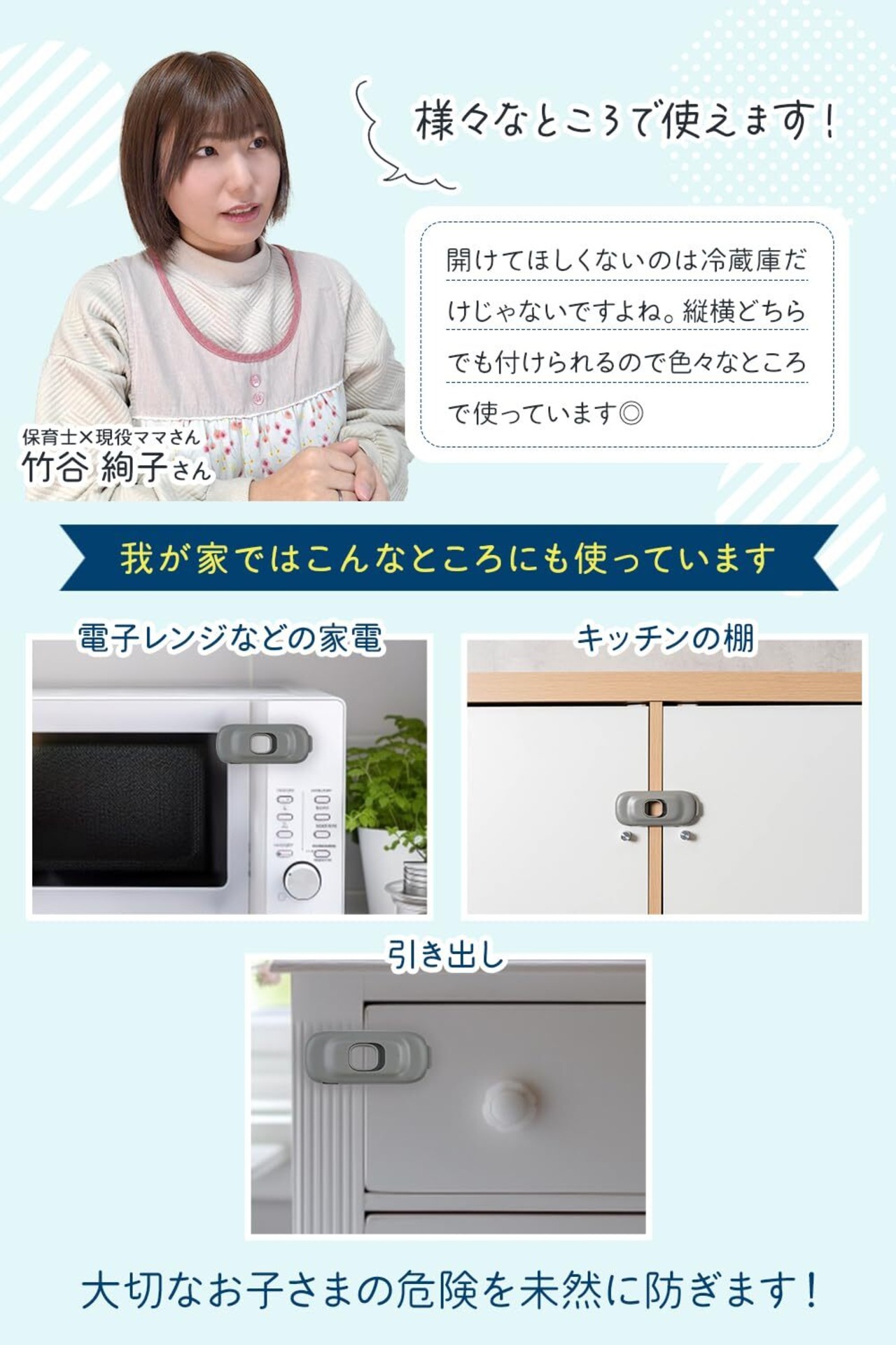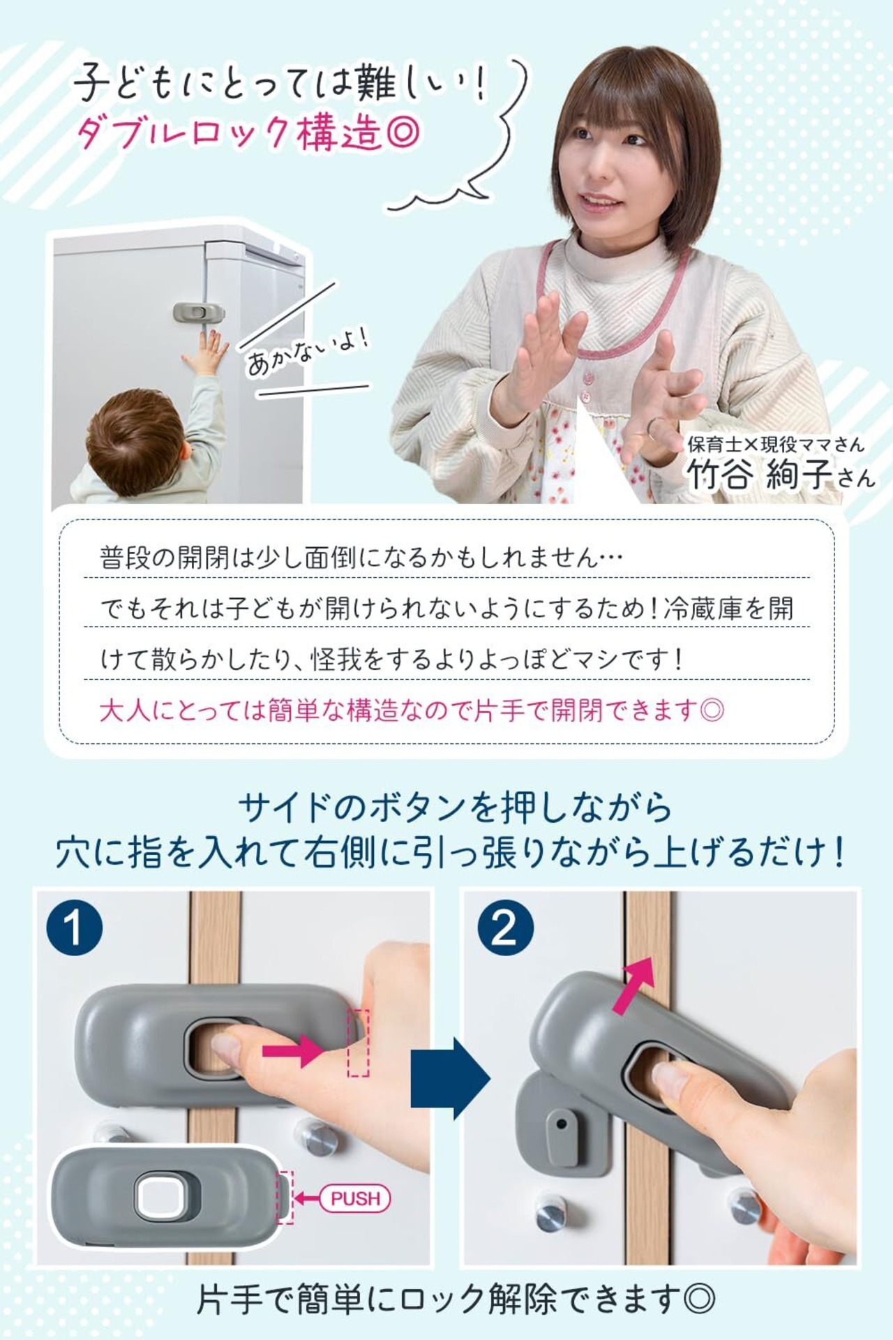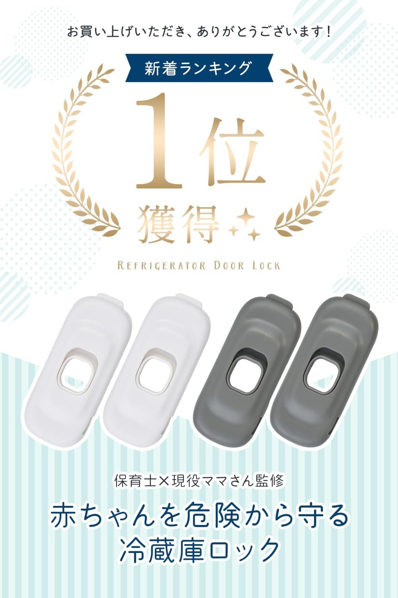 冷蔵庫ロック チャイルドロック 【保育士×現役ママさん監修】ダブルロックで子どものいたずら防止にx設置は貼るだけ RIMA RUHE (ホワイト)