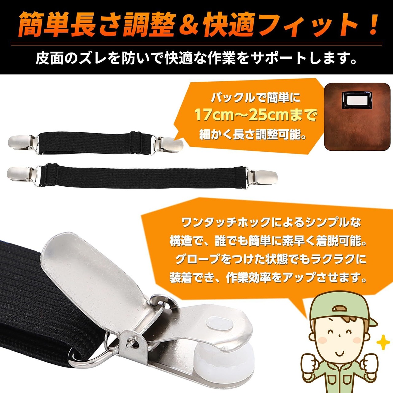 【簡単装着】ワンタッチホック金具によるシンプルな構造で、誰でも簡単に素早く着脱可能。グローブをつけた状態でもラクラクに装着でき、作業効率をアップさせます。