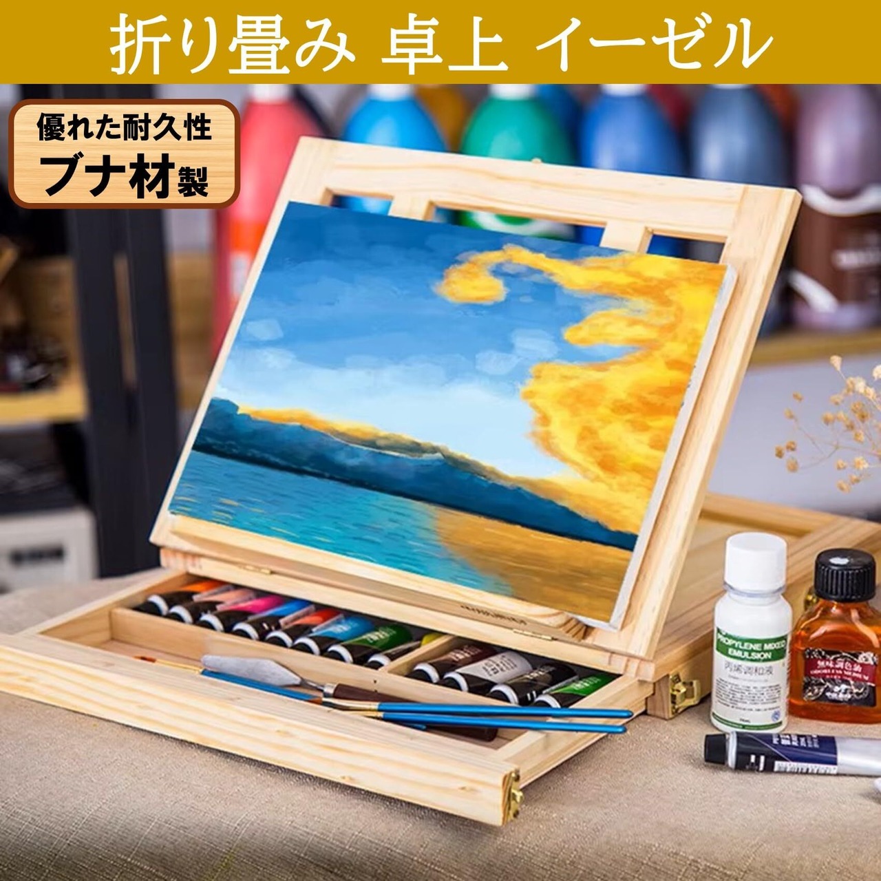 NOELAMOUR イーゼル 卓上 木製 折りたたみ 画架 画板 スケッチ板 イーゼルスタンド 油絵 絵画 キャンバス