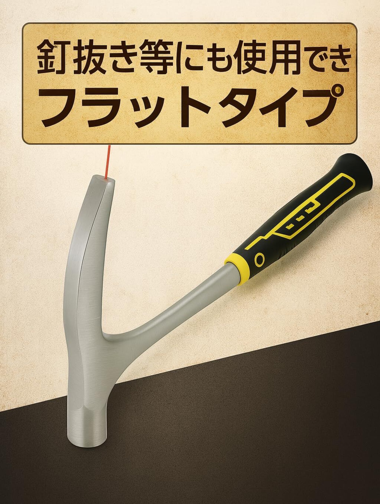 【UQ商事】 石工 ハンマー 小型 ピッケル ゴム 地質調査 金槌 かなづち フラットチップ 鉱山調査 アウトドア DIY 滑り止め