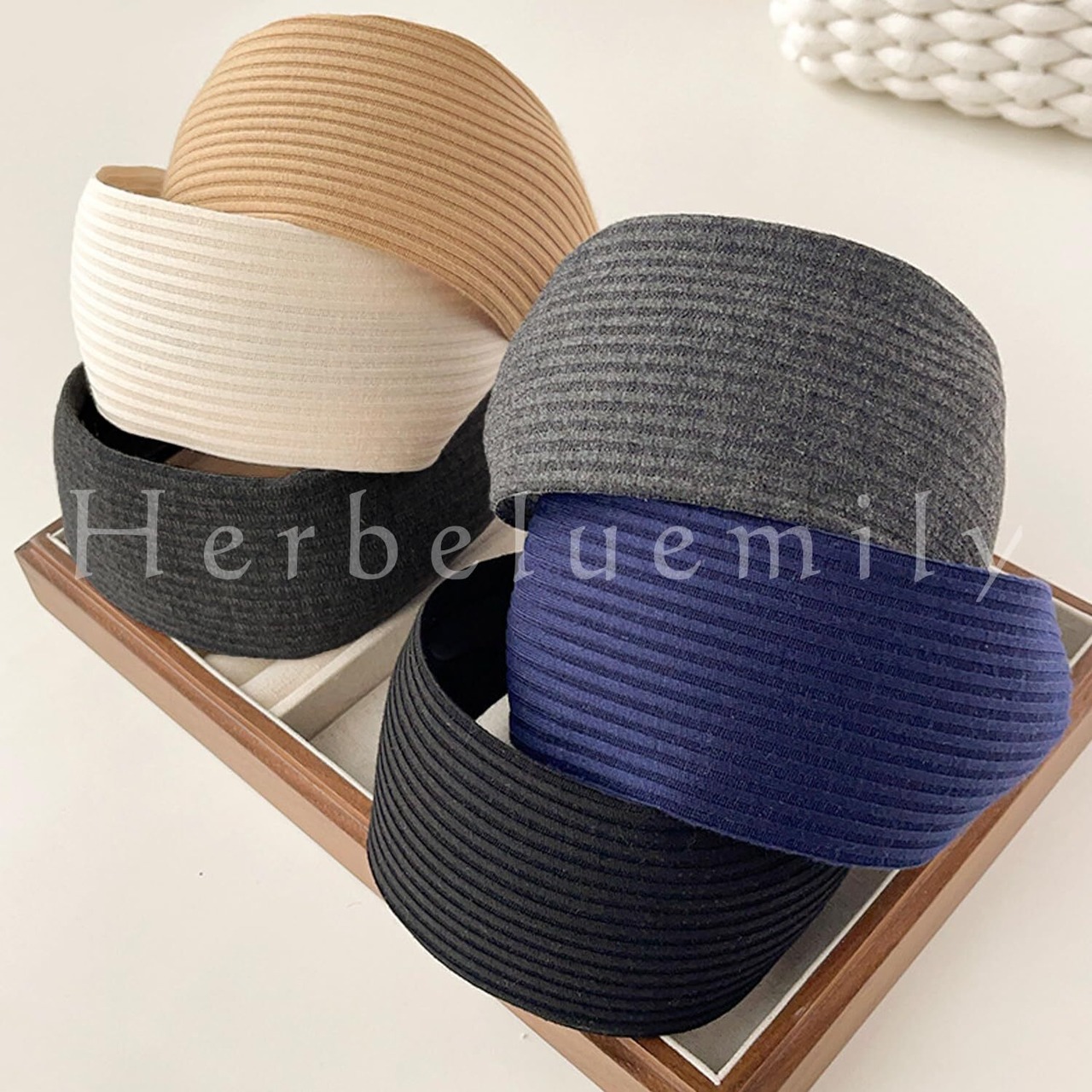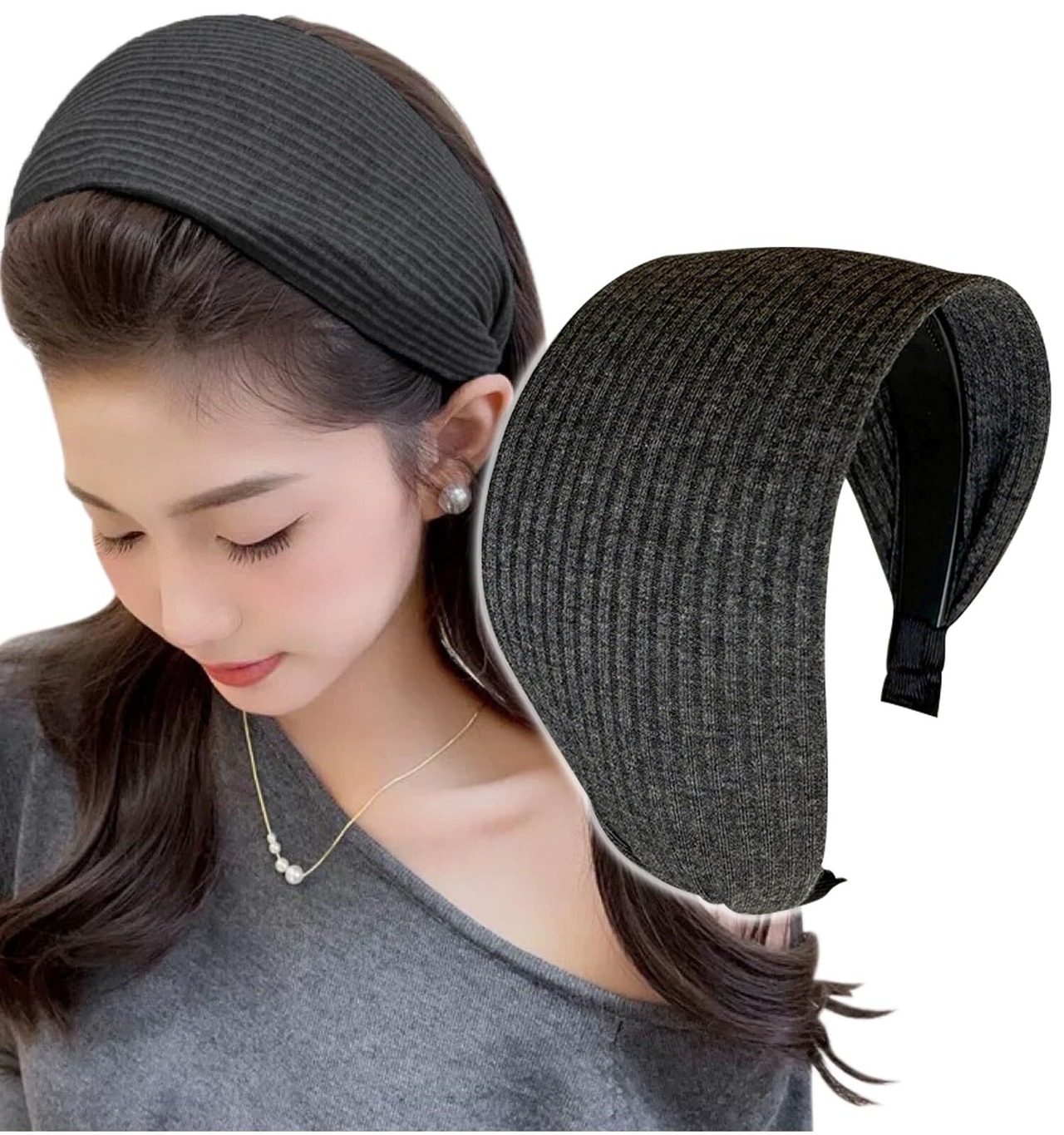 [Herbeluemily] カチューシャ 髪留め ヘアバンド 幅広 スウェット ヘアターバン風 洗顔 リブ おしゃれ ダークグレー HM-0171-R03-DGY
