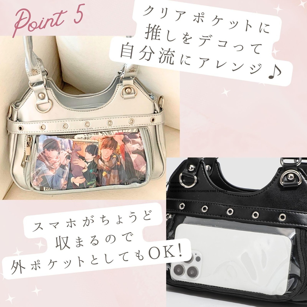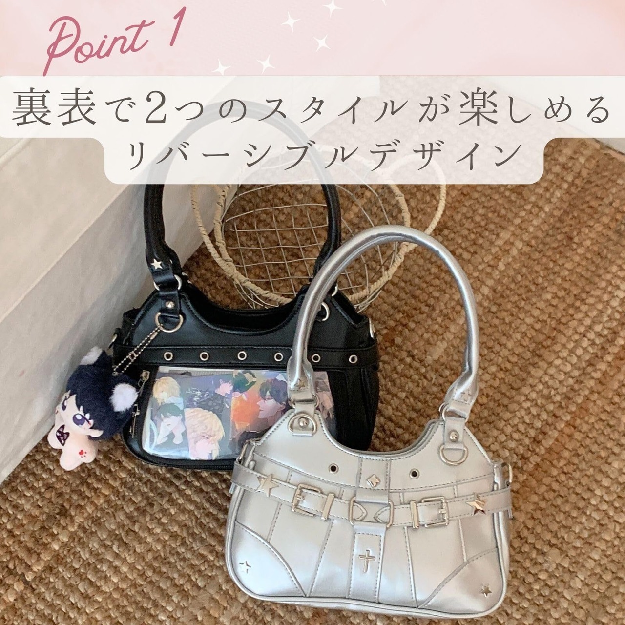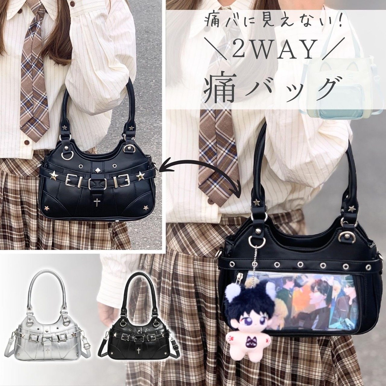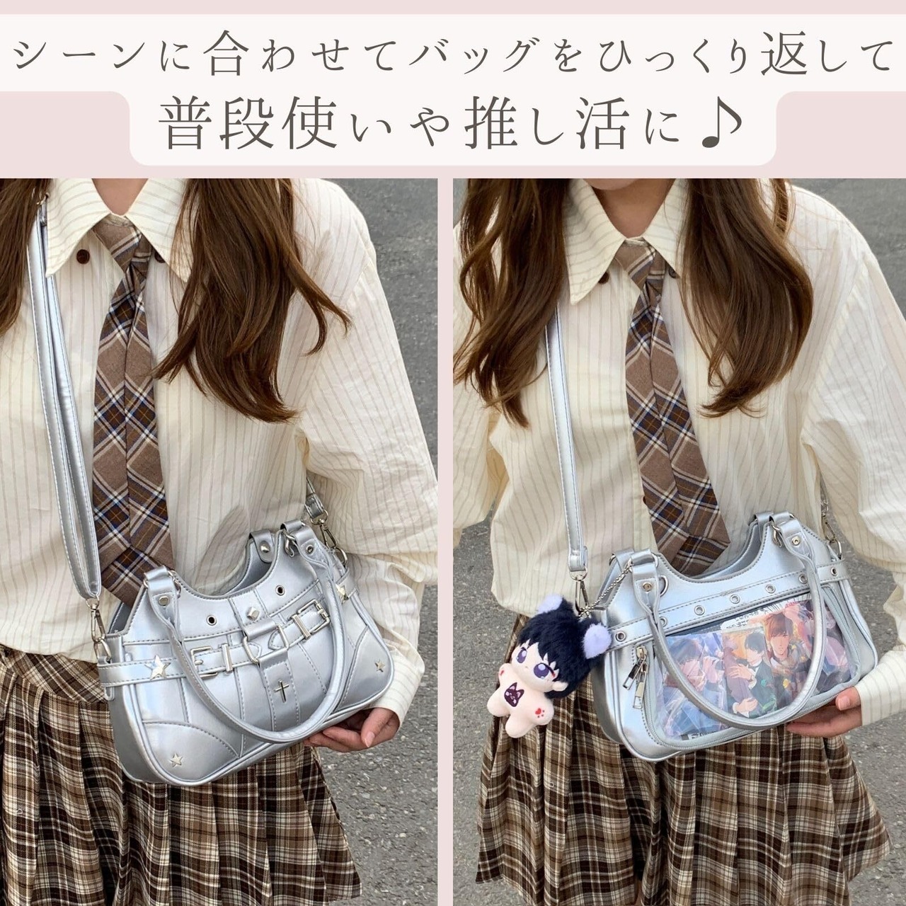 [ハルジオ] 痛バに見えない 痛バッグ ショルダー 痛バ 小さめ 痛バック ミニ ショルダーバッグ ハンドバッグ トートバッグ レディース バッグ 2WAY 地雷系 ゴスロリ Y2K 推し活バッグ 可愛い 肩掛け トート 鞄 黒 銀色 推し活 推し 人気