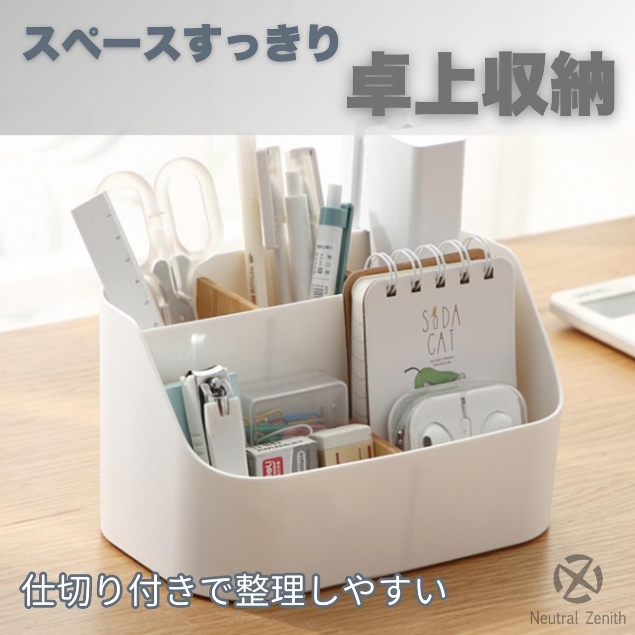 Neutral Zenith デスクオーガナイザー 小物入れ 卓上 リモコン 収納 ペン立て 仕切り 取り外し可能 ホワイト