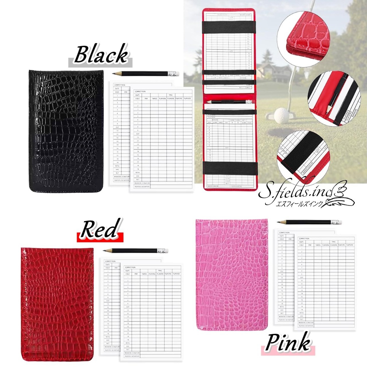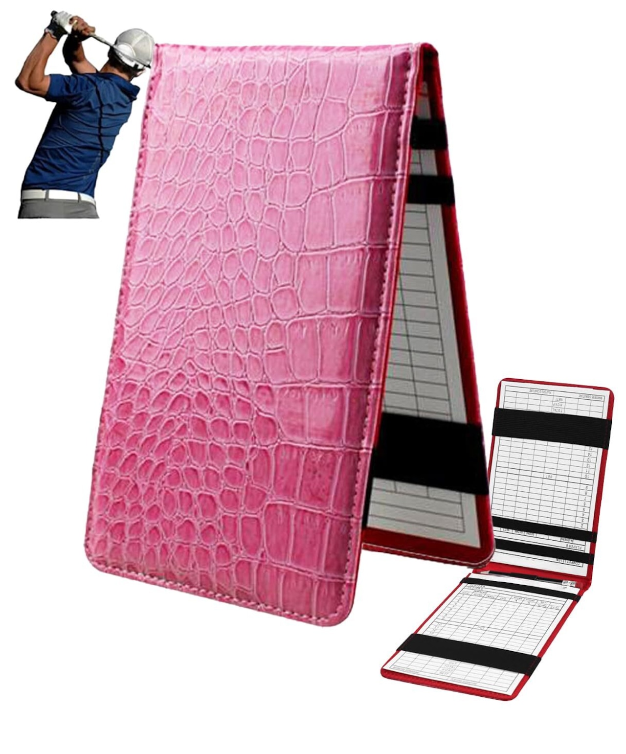 高級感あふれるPUレザー製ゴルフ用スコアカードホルダー(スコアカード2枚と鉛筆付き)です。おしゃれなクロコダイル柄で、ブラック、レッド、ピンクの3カラーからお選びいただけます。