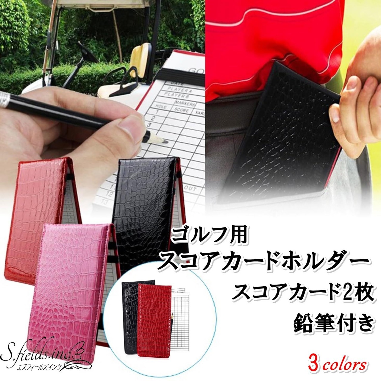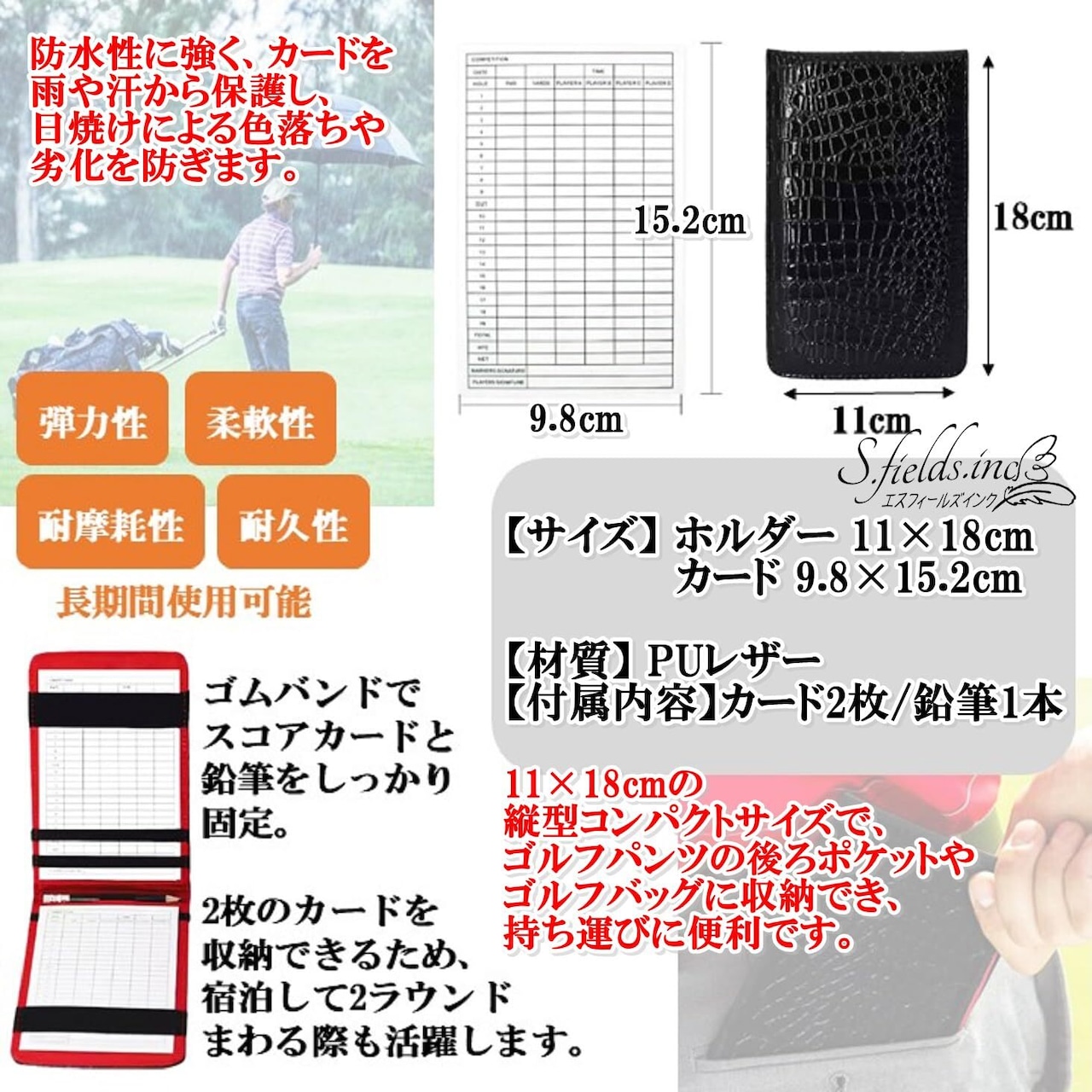 S.fields.inc スコアカードホルダー ゴルフ 縦型 PUレザー カード2枚 鉛筆付き スコアブックカバー