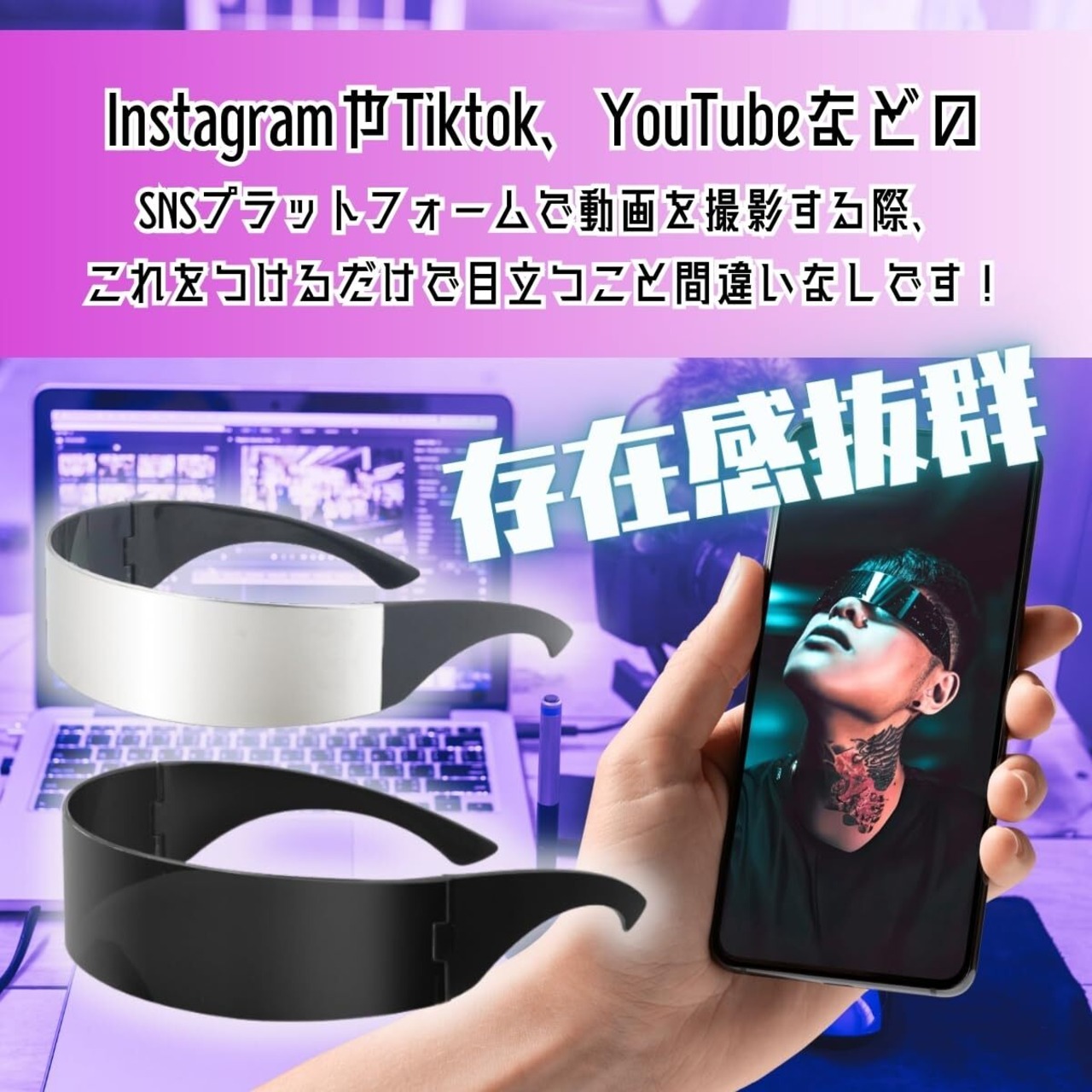 【近未来を感じさせるスタイリッシュなデザイン】 SF映画やサイバーパンクの世界観を彷彿とさせる近未来的なデザインが魅力です。直線的でシャープなフォルムは、シンプルながらも強い存在感を放ち、どんなコーディネートにもアクセントを加えます。フェスやクラブイベント、コスプレ、ハロウィンなどの仮装パーティーで注目を集めること間違いなし。近未来ファッションやテック系スタイルが好きな方にもおすすめのアイテムです。