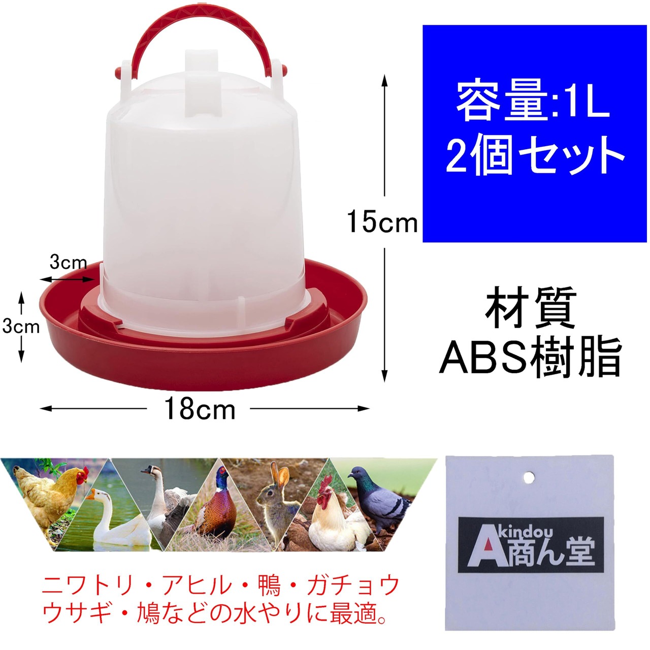 akindou 自動給水器 水飲み器 容量 1L ニワトリ ヒヨコ 鳥用 鶏 アヒル 鴨 (2個セット)