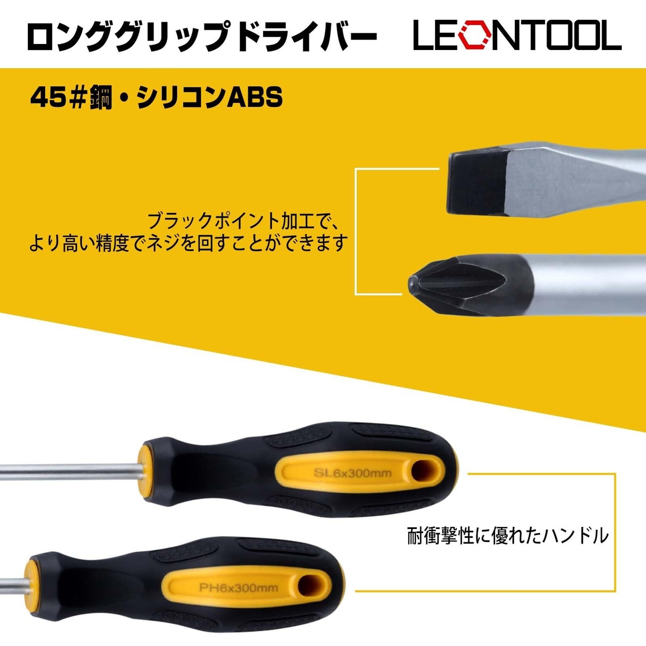 LEONTOOL ロングドライバーセット 光軸調整 マグネットドライバー 消磁器/磁化工具付 12" ロングプラス マイナス 6mm 長軸 精密シリコーンハンドル付 狭いスペースや手の届きにくい所のネジ締め作業に
