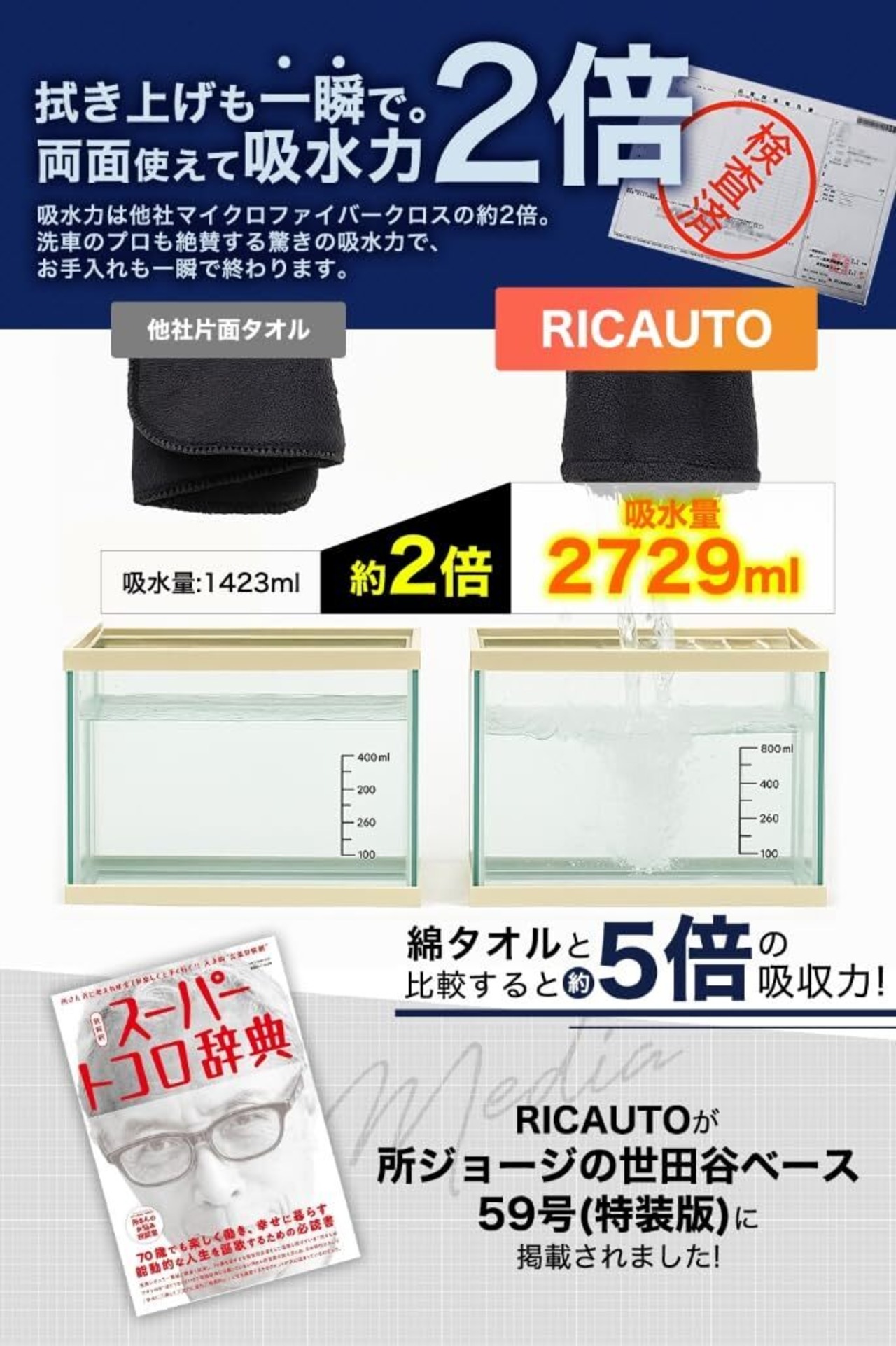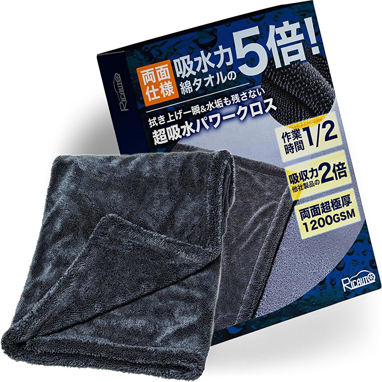 【所ジョージの世田谷ベース掲載】 RICAUTO GS洗車チーム推奨 洗車 タオル 洗車用品 マイクロファイバークロス ながら洗車 超吸水 両面使用 拭き上げ専用 ドライヤークロス 1200GSM 大判 厚手ツイストパイル(大判 L 1枚 (50cm×80cm)