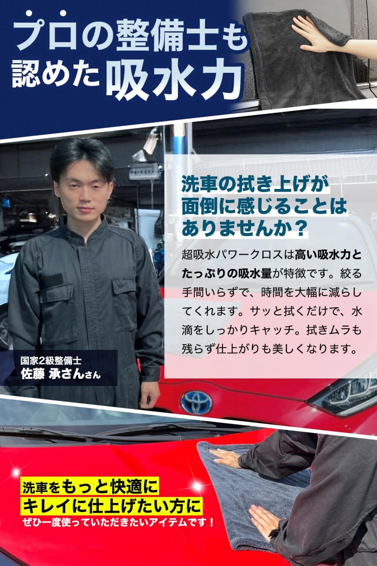 【ながら洗車も可能】吸水力が抜群の洗車タオルなので、片手で拭き取り 、もう片手で他のことを しながら洗車が可能!