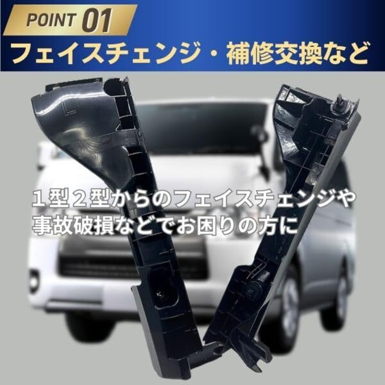 【商品概要】200系ハイエース3型 4型 5型 6型 7型用バンパーサポートブラケットです 1型2型からのフェイスチェンジ時に必要となります 事故破損等でお困りの方にもオススメです