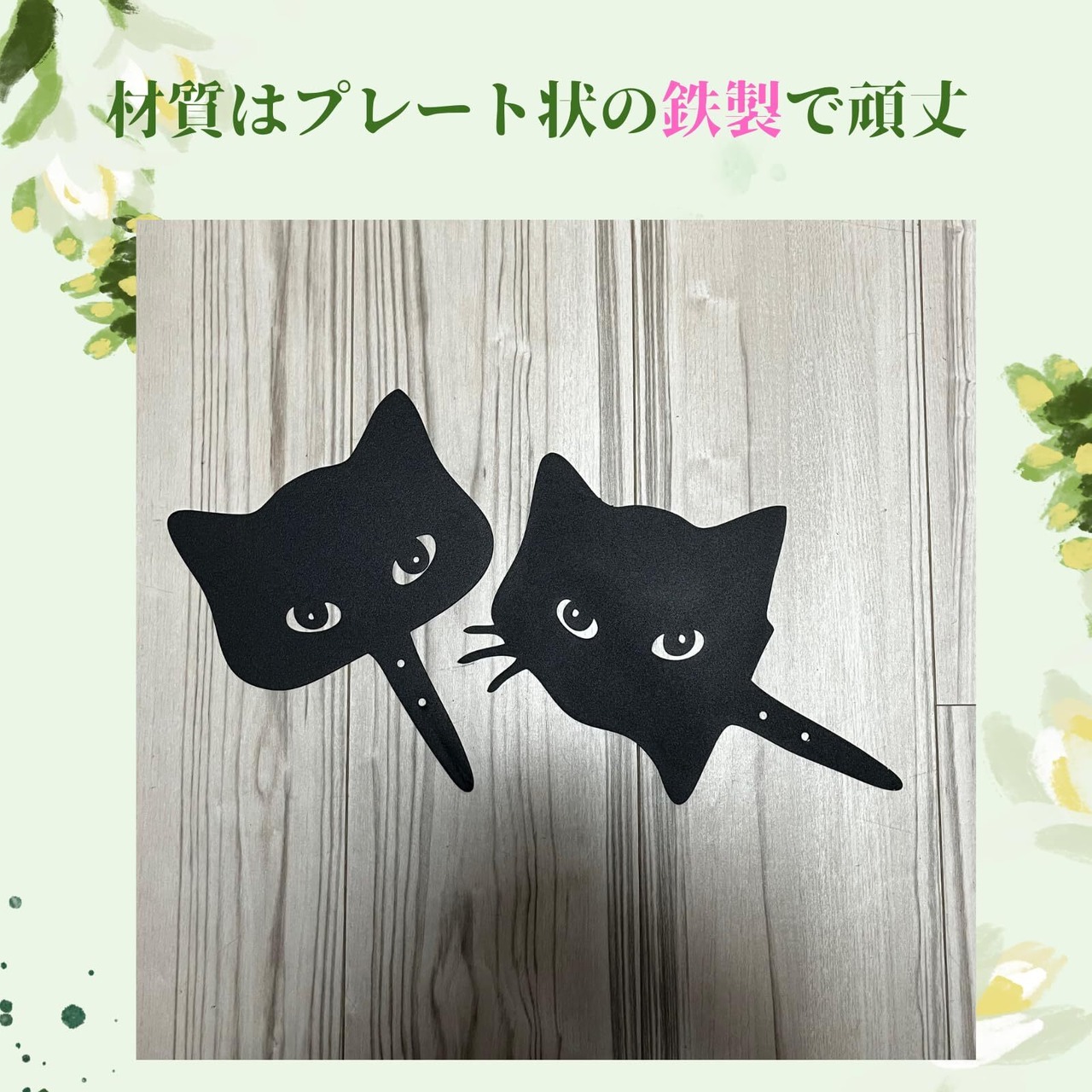 [VIVIORA]猫 アイアン オブジェ アニマル 北欧 置物 ネコ 黒猫 ガーデンオーナメント 園芸 ガーデニング 雑貨 ウェルカムプレート装飾 2枚組