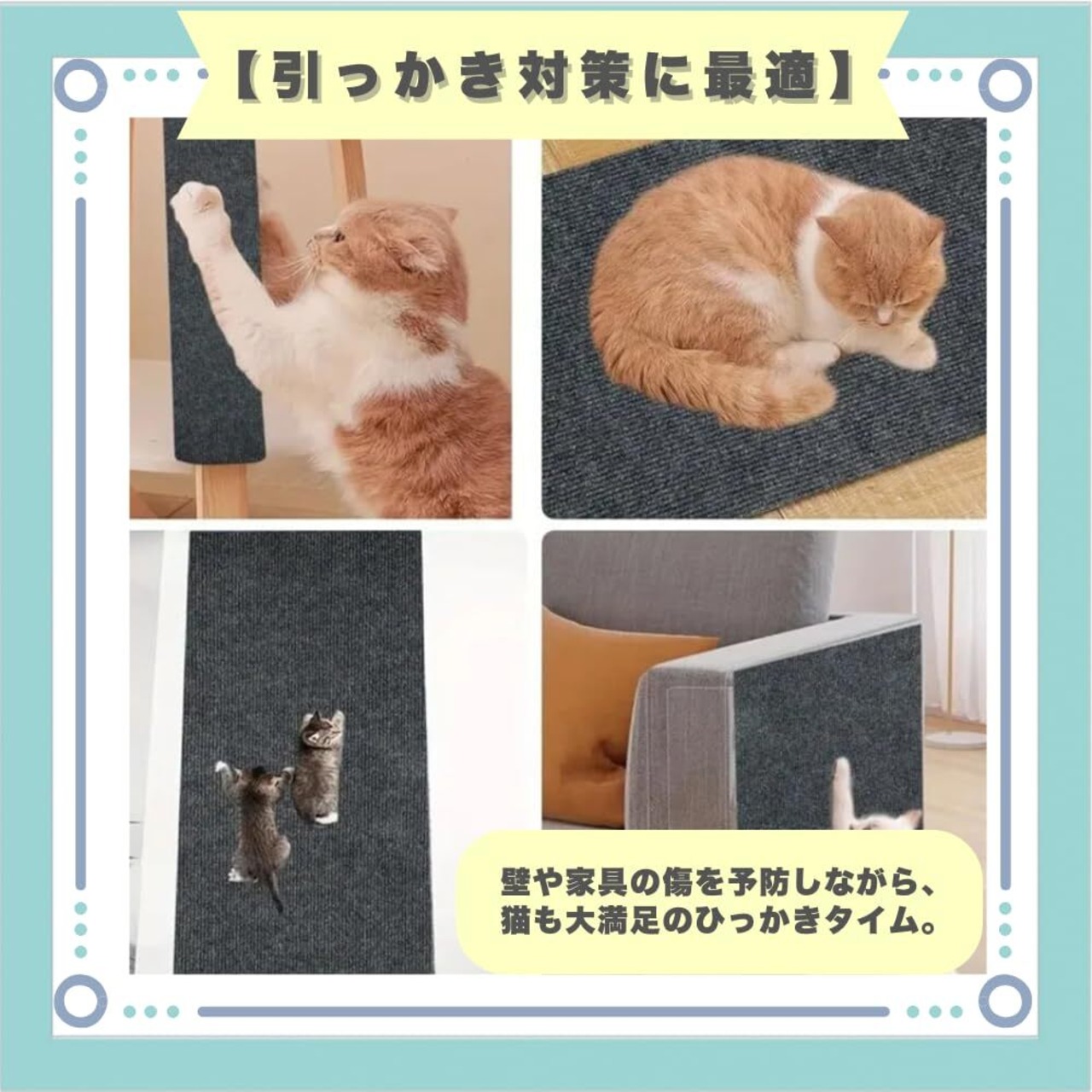 【省スペースで大活躍】限られた空間でも貼るだけで爪とぎスペースが簡単に完成!【インテリアにも馴染む】おしゃれなシンプルカラーで、部屋の雰囲気を壊さず設置可能。【引っかき対策に最適】壁や家具の傷を予防しながら、猫も大満足のひっかきタイム。【すぐに使える簡単設置】剥がして貼るだけの設置で、忙しい飼い主さんにも最適。
