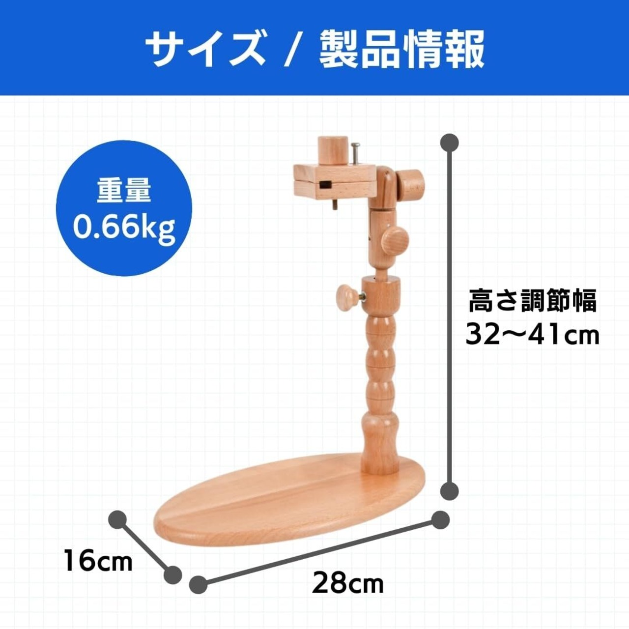 ateena 刺繍 刺繍枠 刺繍スタンド 刺繍台 スタンド 木製フレーム 卓上スタンド ハンドメイド (ナチュラル)